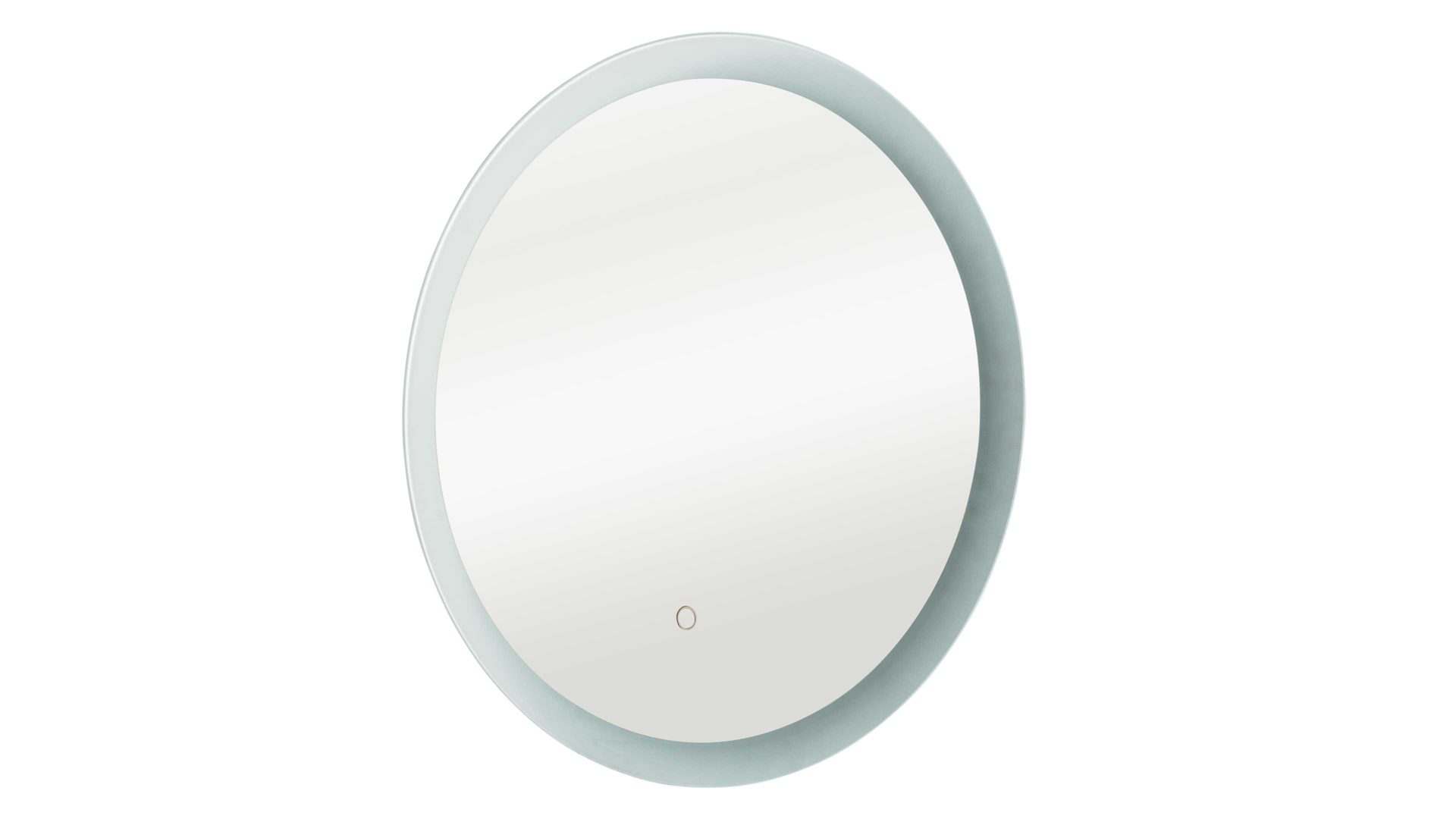 Der runde Spiegel (Typ 15201) mit einem Durchmesser von ca. 60 cm und einer Tiefe von ca. 2,5 cm wirkt elegant und zurückhaltend. Das umlaufende sandgestrahlte LED-Lichtfenster (ca. 4 cm breit) setzt ein dezentes Highlight und sorgt für gleichmäßige Helligkeit.