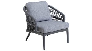 grauer Olefin-Teddybezug, anthrazitfarbene Rope-Bespannung und anthrazitfarbenes Aluminium