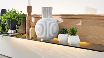 Die LED-Beleuchtung wurde speziell für die Möbel mit Glaseinsatz der Interliving Wohnzimmer Serie 2025 entwickelt und lässt sich mühelos integrieren. Besonders schön wirkt sie in Vitrinen, Highboards oder Regalen mit Glastüren, wo sie dekorative Elemente stilvoll hervorheben und deinem Raum mehr Tiefe verleihen.