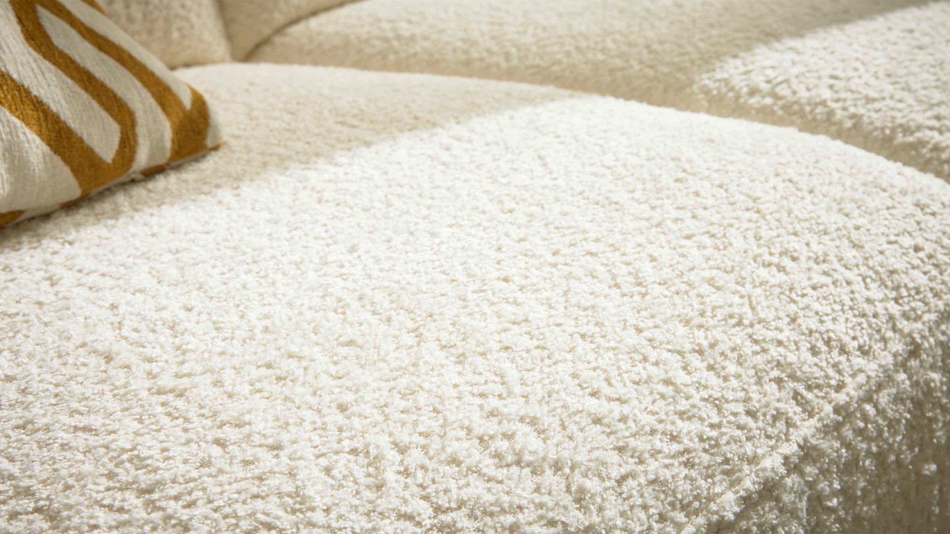 Hochwertiger Chenillebezug in naturweißer Teddyoptik