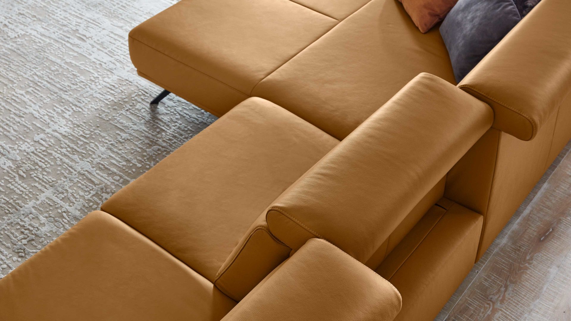 Durch leichtes Anheben und Vorziehen des Rückenkissens erweitert sich die Sitztiefe.