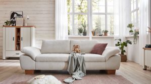 viele Stoff- oder Ledervarianten, Holz- oder Metallfüße in verschiedenen Farben möglich