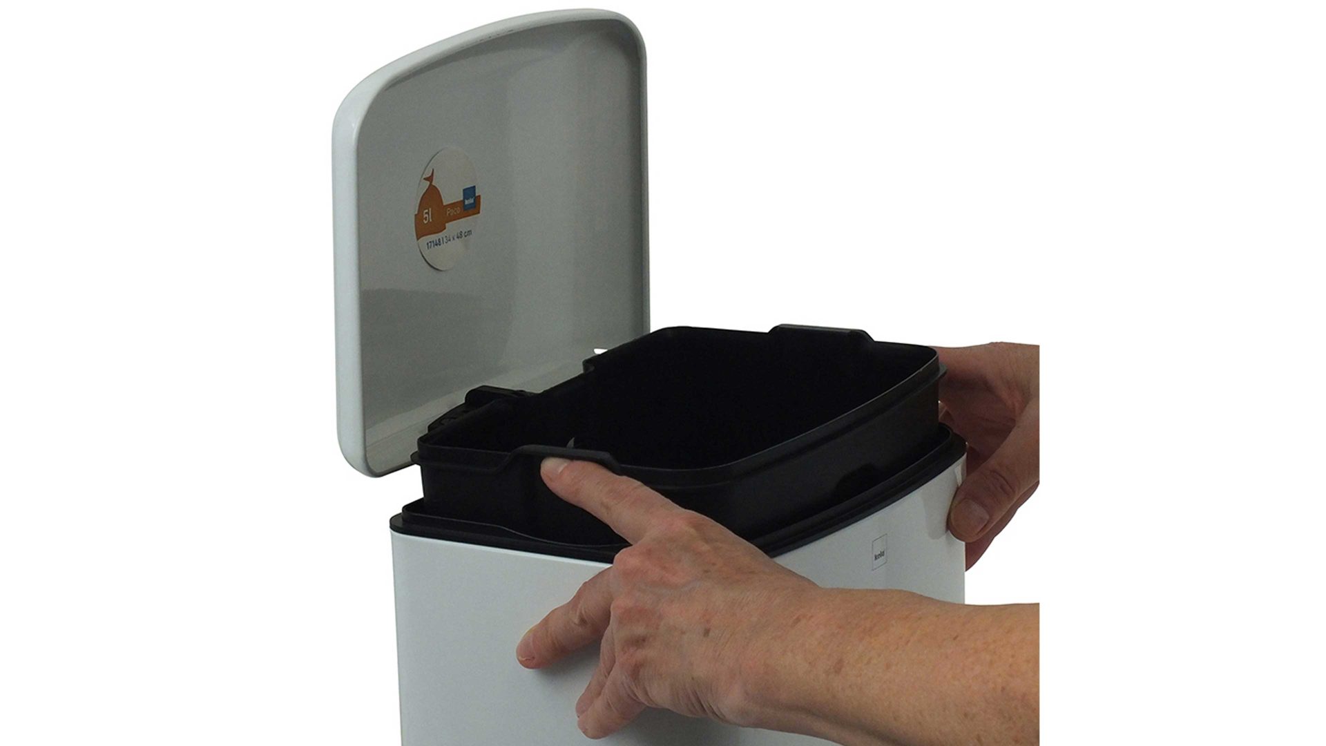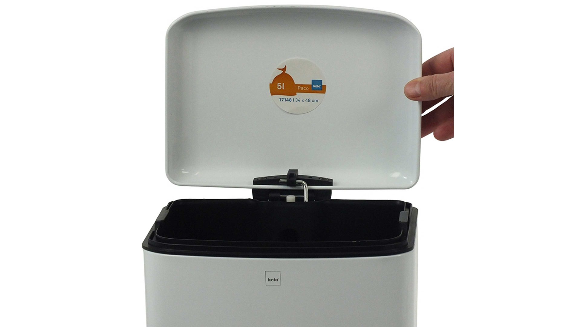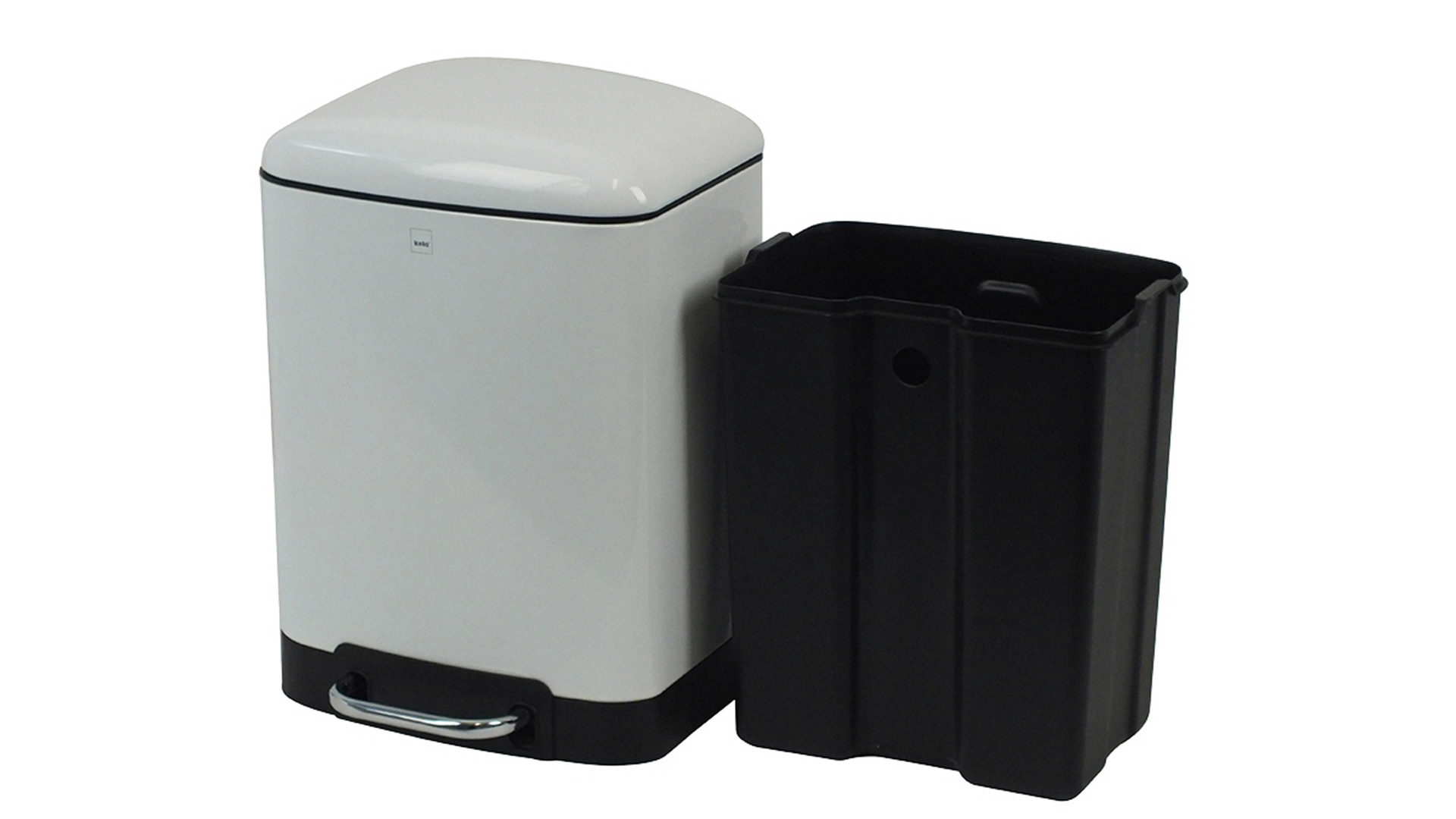 kela Kosmetikeimer Davino | mattweiß pulverbeschichteter Stahl | Silent-Close-System – leise schließender Deckel | arretierbarer Deckel | leicht entnehmbarer schwarzer Kunststoff-Innenbehälter | Fassungsvermögen ca. sechs Liter | Maße ca. 23 x 33 x 23 cm (BxHxT) | verschiedene Farben bestellbar | auch als Treteimer erhältlich