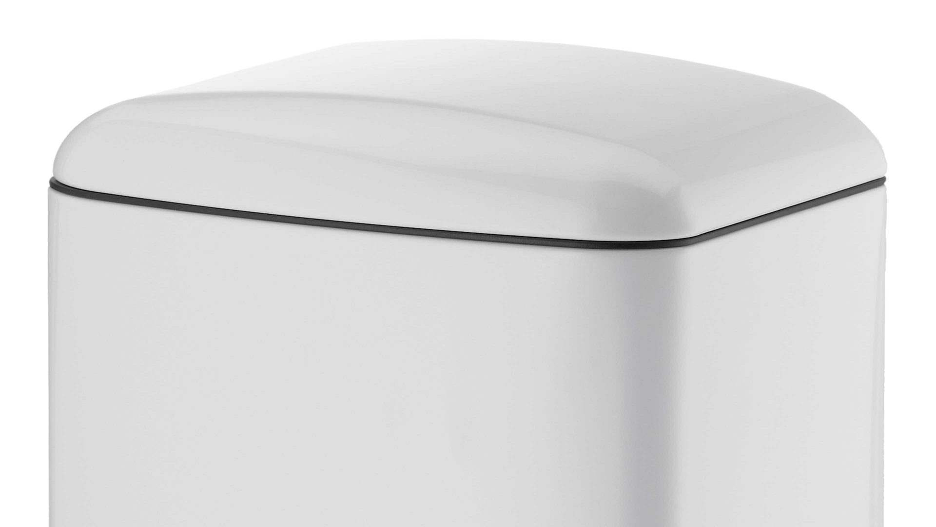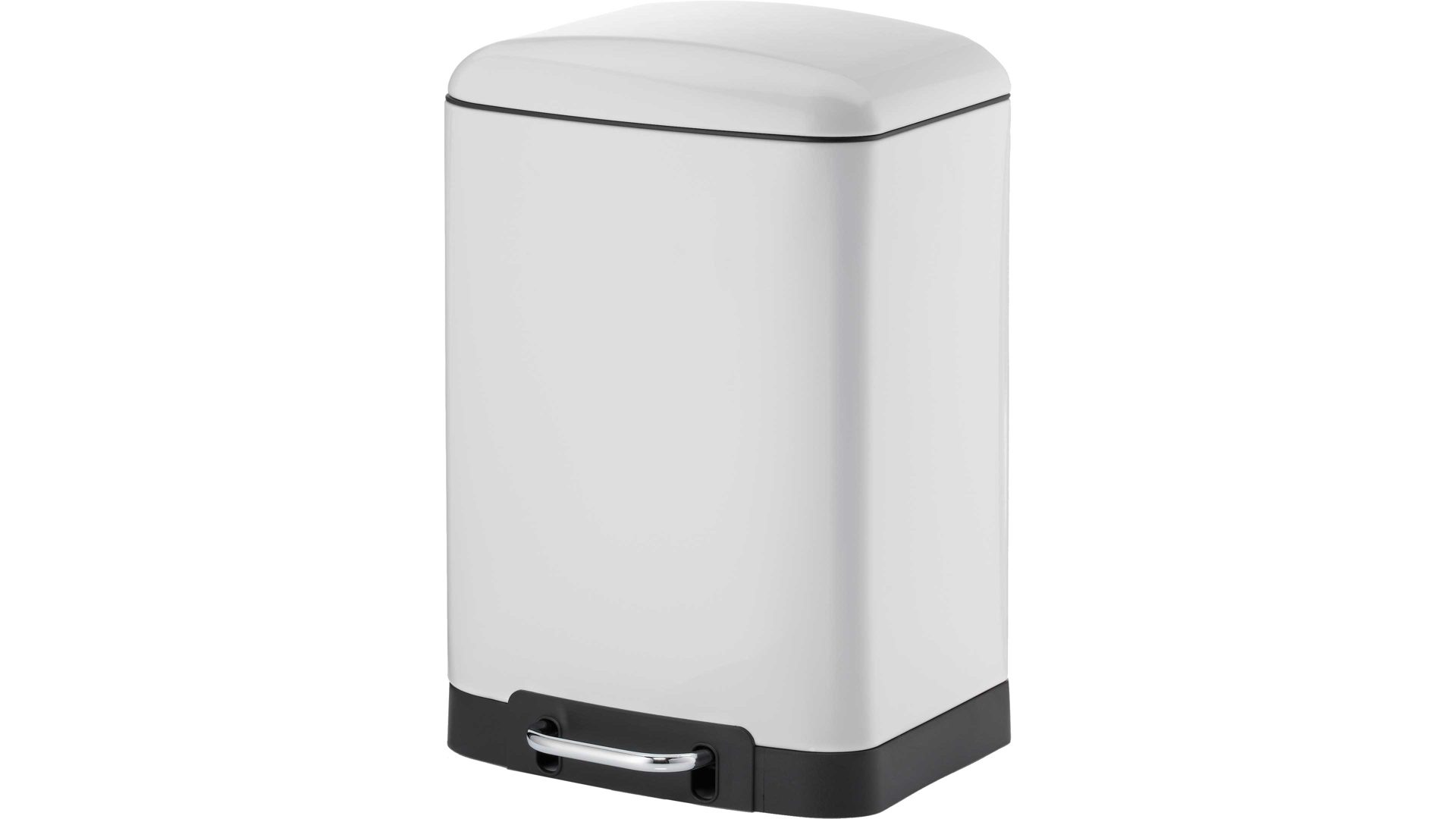 kela Treteimer Davino | mattweiß pulverbeschichteter Stahl | Silent-Close-System – leise schließender Deckel | arretierbarer Deckel | leicht entnehmbarer schwarzer Kunststoff-Innenbehälter | Fassungsvermögen ca. 12 Liter | Maße ca. 27 x 40 x 23 cm (BxHxT) | verschiedene Farben bestellbar | auch als Kosmetikeimer erhältlich
