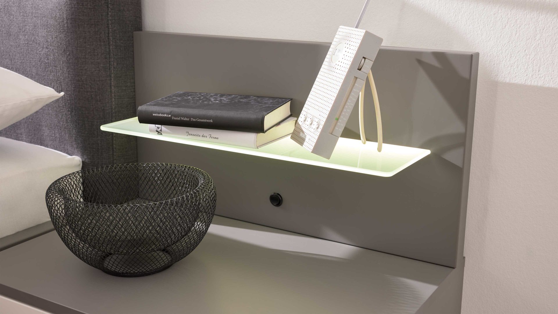- Die Glasbodenbeleuchtung 80029 eignet sich ideal zur Kombination mit Paneelaufsätzen – für harmonisch beleuchtete Abstellflächen neben dem Bett.