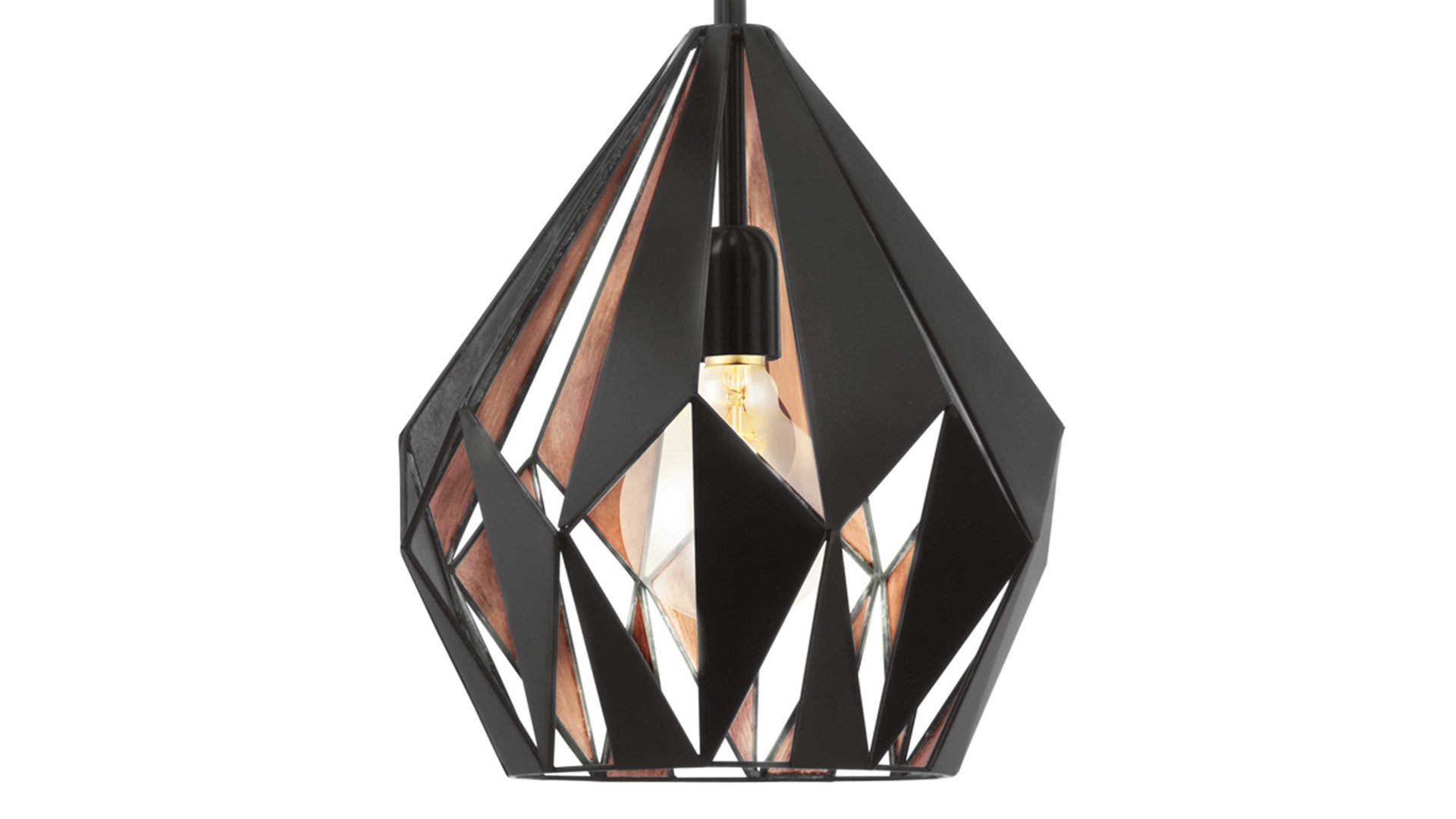 Kupfer liegt bei Einrichtungsobjekten wieder im Trend und macht auch vor Leuchten keinen Halt. Wie toll das aussehen kann, beweist hier die EGLO Pendelleuchte Carlton in geometrischer Ausführung. Die kupferfarbenen Akzente der Pendellampe präsentieren sich in einem modernen Design und setzen so ein Statemanet in mit schwarzem Grundton. Besonders schön passt der Leuchtenschirm in der Farbe Kupfer zum Industrie-Stil.