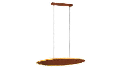 Ein Materialmix aus rostfarbenem Metall und goldfarbenen Lampenschirm erzeugt einen besonders wertigen Look. So unterstreicht die formschöne Hängeleuchte den edlen Stil eines jeden Einrichtungskonzeptes. Setzen Sie die Lampe sowohl als Lichtquelle als auch als geschmackvolles Dekoobjekt im Wohnbereich, Flur oder Schlafzimmer ein.