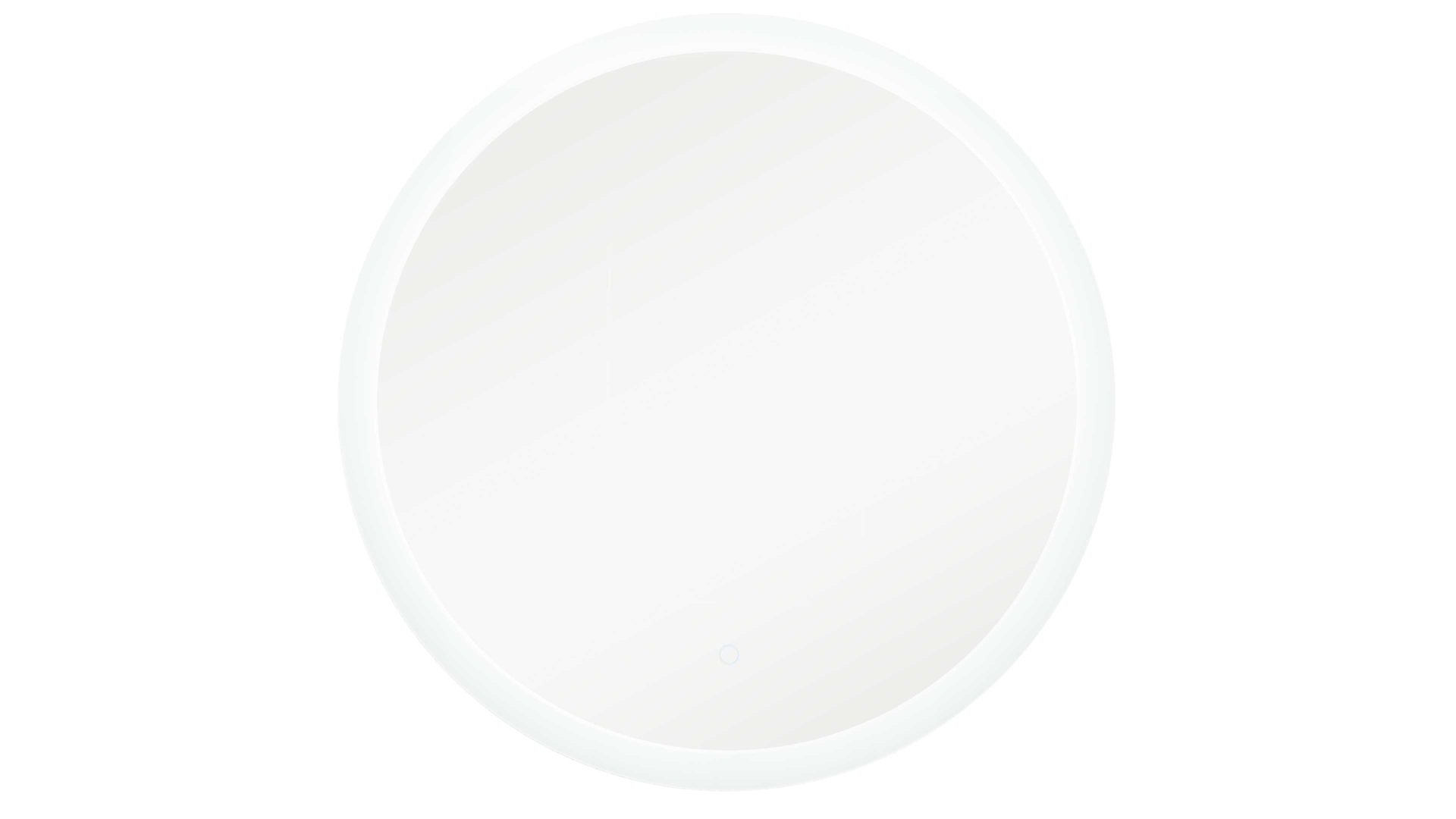 Für stimmungsvolle Beleuchtung sorgt der beleuchtete Wandspiegel (Typ 15202) mit umlaufendem sandgestrahltem LED-Lichtfenster und Touchsensor. Der Spiegel hat einen Durchmesser von ca. 75 cm, ist ca. 3 cm tief und mit einem fest verbauten, nicht austauschbaren LED-Leuchtmittel (20 Watt) der Energieeffizienzklasse F (Spektrum A bis G) ausgestattet – inklusive Konverter.