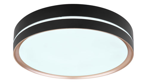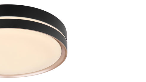mattschwarzes Metall, kombiniert mit bronzefarbenem Metall und opalfarbenem Kunststoff