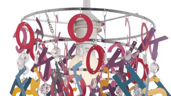 Der näve Kinderzimmer-Lampenschirm, der zahlreiche bunte Buchstaben in einem wild-verspielten Mix präsentiert, ist für eine Pendelleuchte ...
