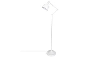 weißer Stoff-Lampenschirm kombiniert mit schwarzem Stahl-Fuß