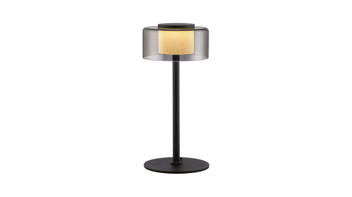 matt schwarzes Metall kombiniert mit rundem Lampenschirm aus Rauchglas