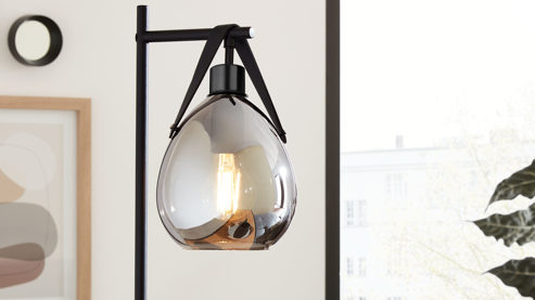 Die Tischleuchte aus der Interliving Leuchten Serie 9332 verbindet klassisch mattschwarzes Metall mit einem stilvollen Lampenschirm aus verspiegeltem, rauchfarbenem Glas und schwarzem Kunstleder. Diese edle Materialkombination verleiht der Lampe eine moderne, leicht futuristische Ausstrahlung mit einem Hauch von Industrial-Stil – perfekt, um deinem Wohn- oder Arbeitsbereich ein stilvolles Highlight zu verleihen.