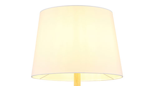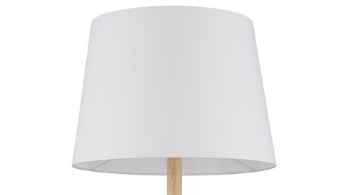 weißer Textil-Lampenschirm und kiefernholzfarbenes Metall