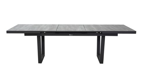 Dank des Synchronauszugs lässt sich der Tisch mühelos von 200 cm auf 260 cm verlängern und bietet so flexibel Platz für Familie und Gäste. Das markante V-Fuß-Gestell aus Aluminium in Anthrazit sorgt nicht nur für einen sicheren Stand, sondern setzt auch einen stilvollen, modernen Akzent.