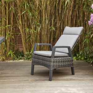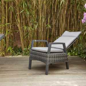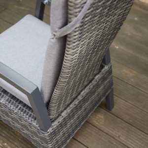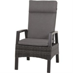 Der Gartenstuhl Taranto von Siena Garden begeistert durch den speziellen, ungemein hochwertigen Materialmix und das moderne Design. Er kombiniert ein anthrazitfarben pulverbeschichtetes Aluminiumgestell matt, mit einem aus Gardino®-Geflecht doppelhalbrund in grau. Die Sitzkissen vom Sessel Taranto sind aus Polypropylen, 275 g/m² in blau-grau und gehören zum Lieferumfang. Zu dem Sessel Taranto, gibt es einen passenden Hocker, den sie zusätzlich bestellen könnten.