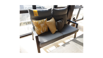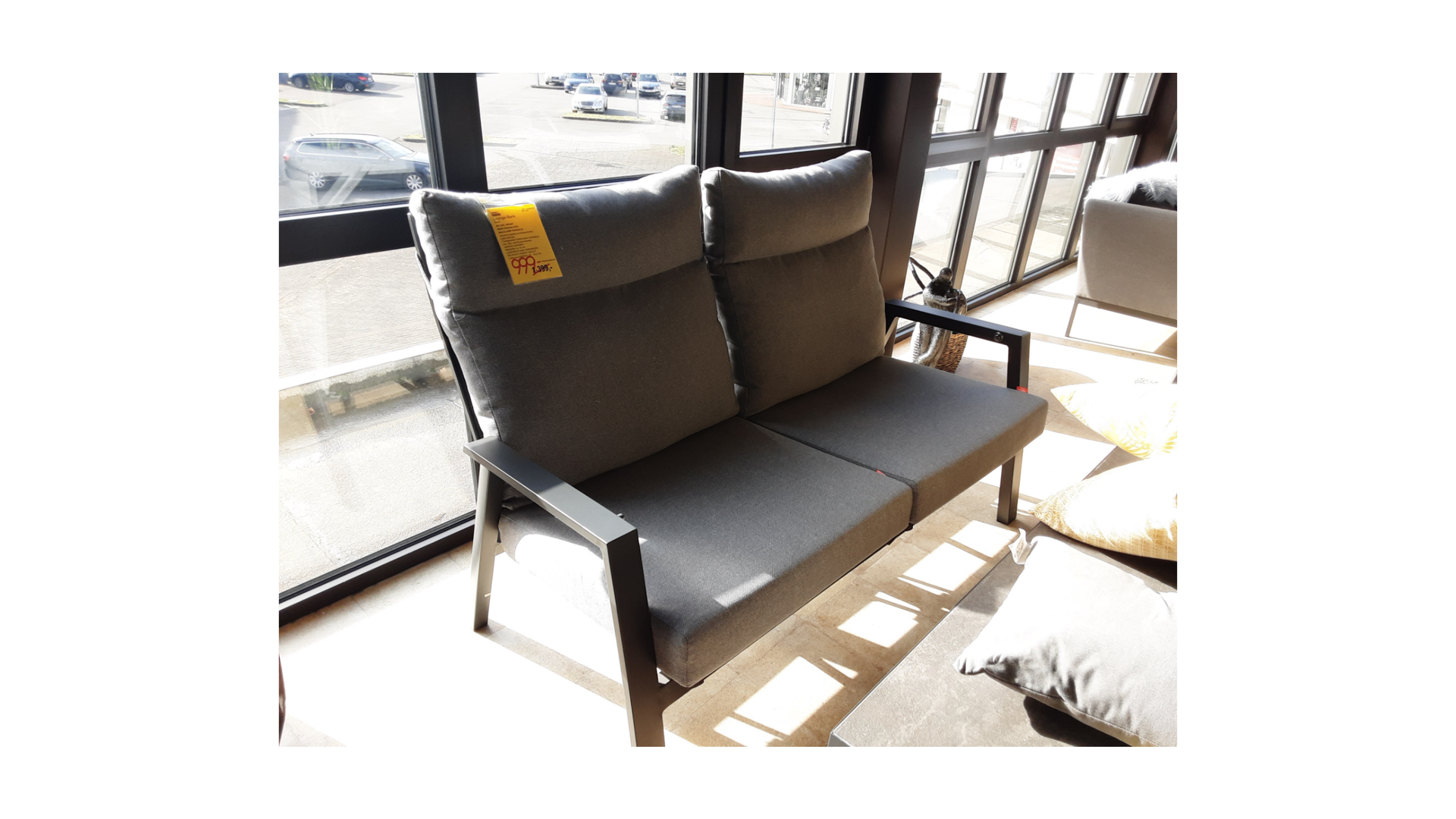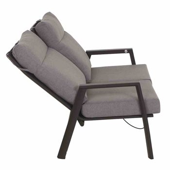Das Gestell und die Armlehnen sind aus Aluminium und zusätzlich pulverbeschichtet in matt anthrazit.