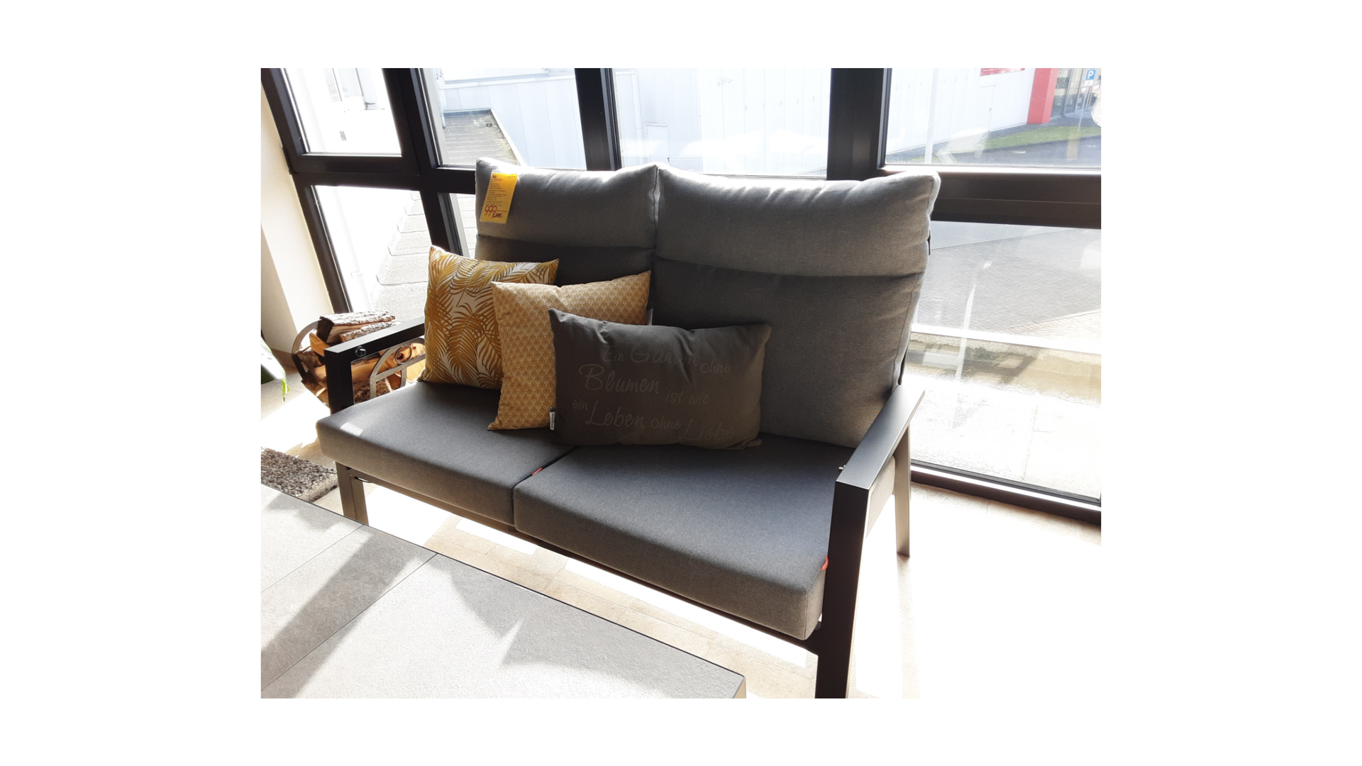 Das hochwertige Kissen in in salt&pepper Optik runden das ganze Bild ab.
