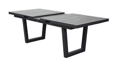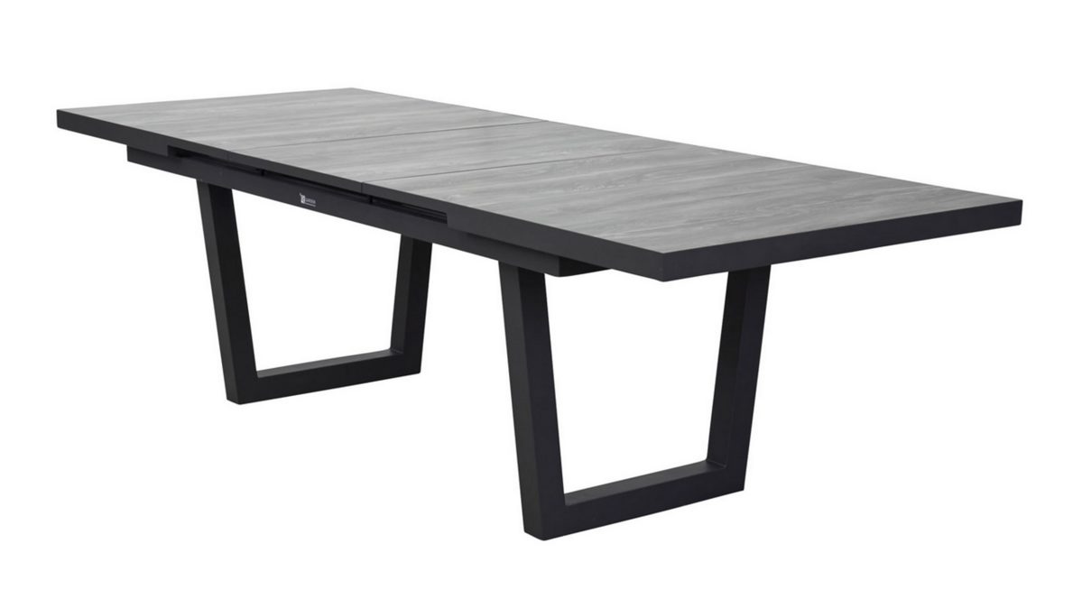 Dank des Synchronauszugs lässt sich der Tisch mühelos von 200 cm auf 260 cm verlängern und bietet so flexibel Platz für Familie und Gäste. Das markante V-Fuß-Gestell aus Aluminium in Anthrazit sorgt nicht nur für einen sicheren Stand, sondern setzt auch einen stilvollen, modernen Akzent.