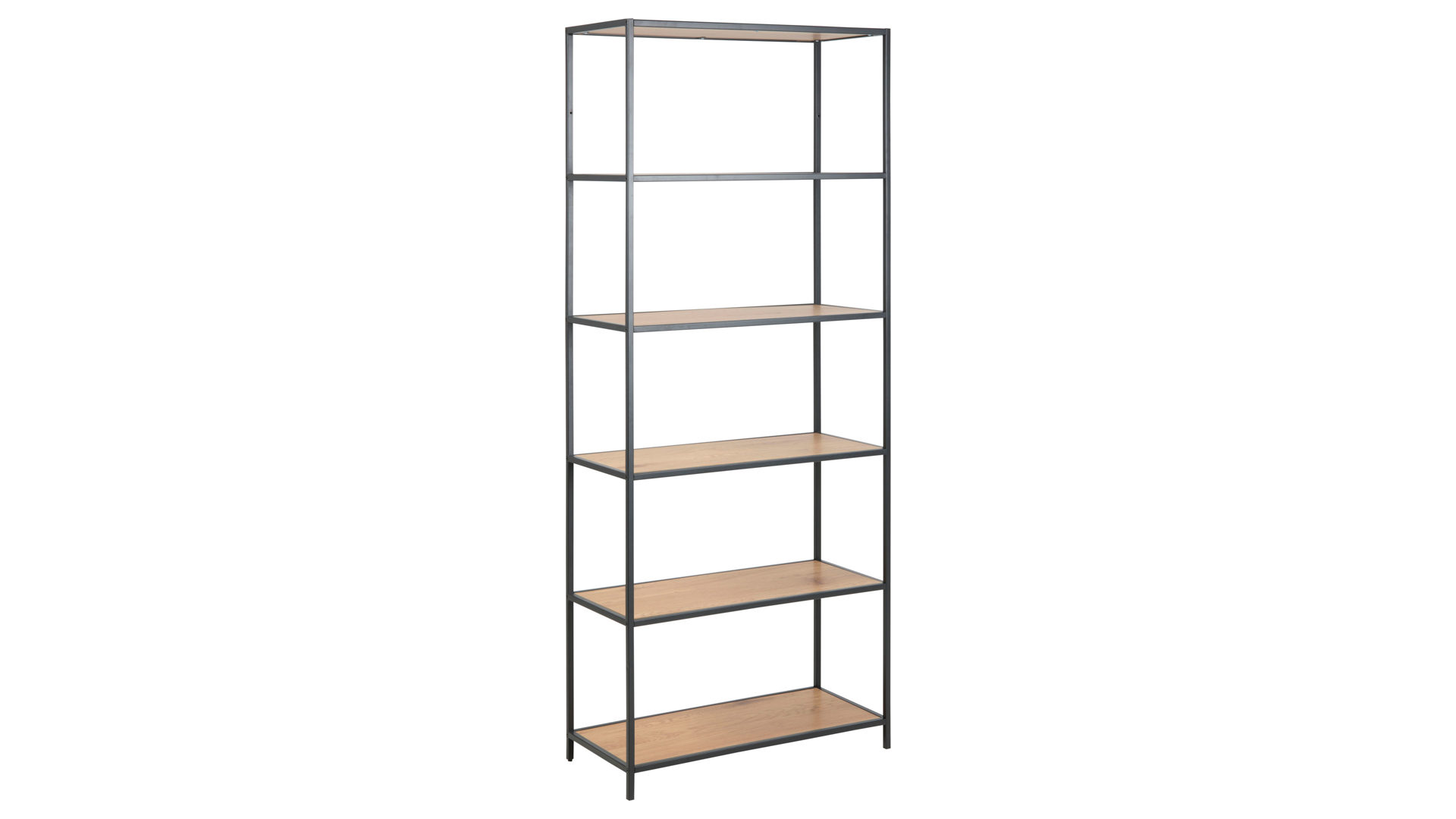 Dann ist dieses Regal im Industrie-Look Ihre erste Wahl. Das Bücherregal macht in jedem Ihrer Wohnräume eine gute Figur und lenkt die Blicke Ihrer Gäste auf sich. In fünf großzügigen Fächern mit Böden in edler Wildeiche-Nachbildung verstauen Sie Dinge des alltäglichen Lebens ordentlich und griffbereit.