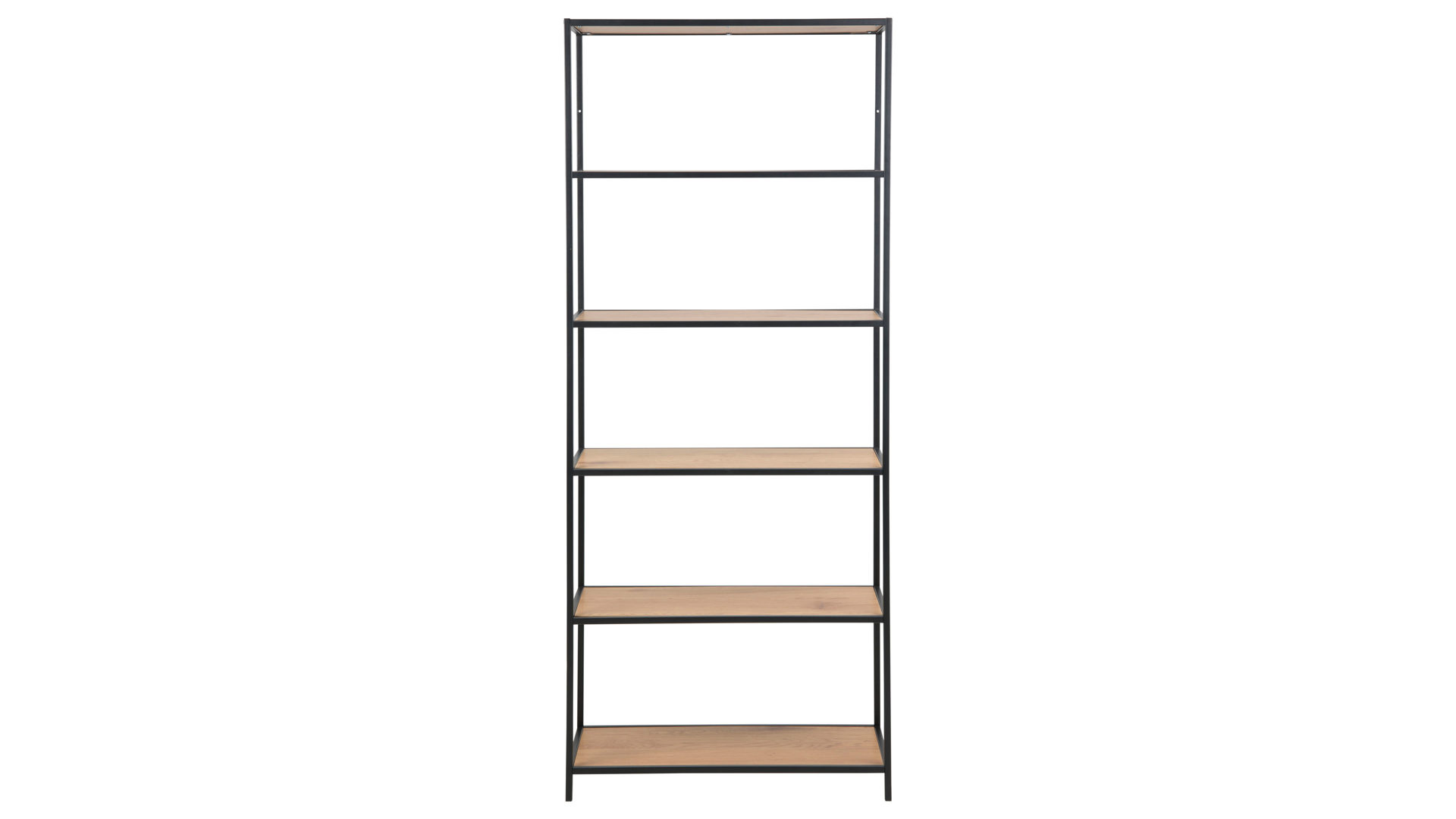 Das schwarz pulverbeschichtete Stahlgestell mit rauer Oberfläche gibt dem Regal ein zeitgemäßes Finish und macht es stabil und widerstandsfähig. Mit Maßen von ca. 77 x 185 x 35 cm (BxHxT) bietet Ihnen das Regal mit vier großzügigen Fächern genug Stauraum für alles Wichtige und lässt sich sowohl als Wohnzimmermöbel als auch als Esszimmermöbel einsetzen.