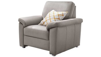 Der formschöne Sessel hat einen geprägten alufarbenen Mikrofaserbezug und klassisch matte Metallfüße. Nehmen Sie auf Ihrem neuen Sessel Platz und genießen Sie entspannte Lesestunden auf der bequemen Super-Bonnellfederkern auf Wellenunterfederung-Polsterung.