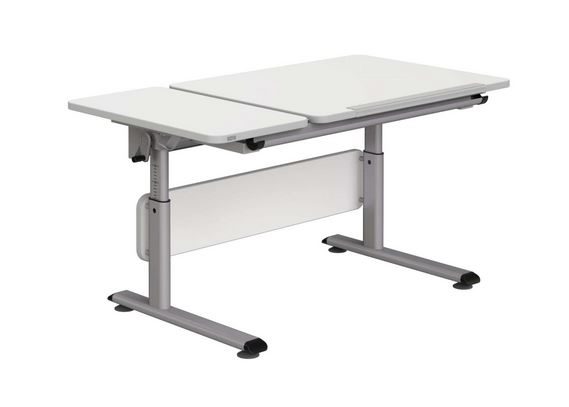 Der PAIDI Schreibtisch Diego, aus einer geteilten Hauptplatte in kreideweiß und einem dazu passenden Metallgestell in silber, passt besonders gut ins Kinderzimmer. Er lässt sich auch mit einem Rollcontainer oder einem Schreibtischstuhl kombinieren.