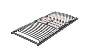 Die 28 Federholzleisten aus hochwertigem Buchenholz sind in elastischen Kautschukkappen gelagert. Sie verteilen die auftretenden Kräfte gleichmäßig auf die Rahmenkonstruktion und reagieren punktelastisch auf jede Bewegung. So wird dein Körper optimal gestützt, während deine Matratze geschont und ihre Lebensdauer verlängert wird.