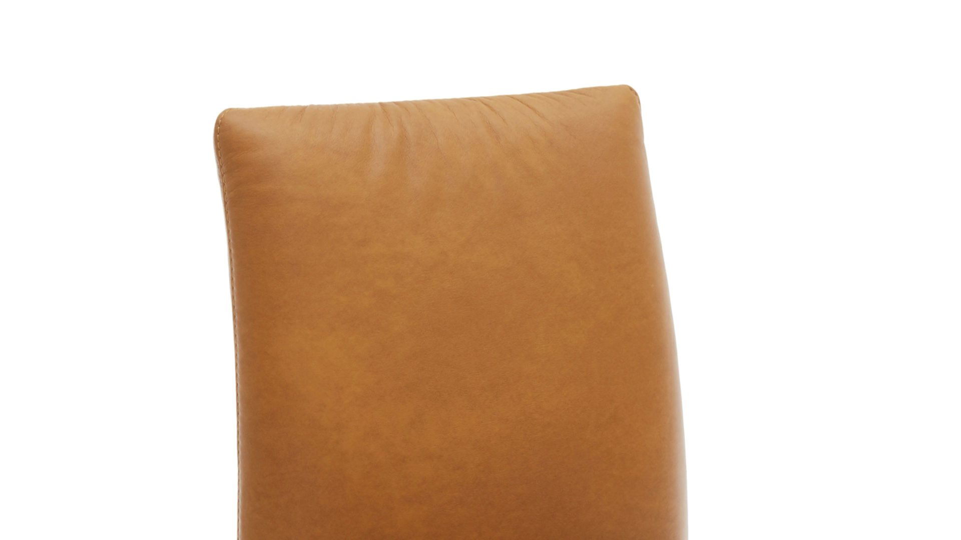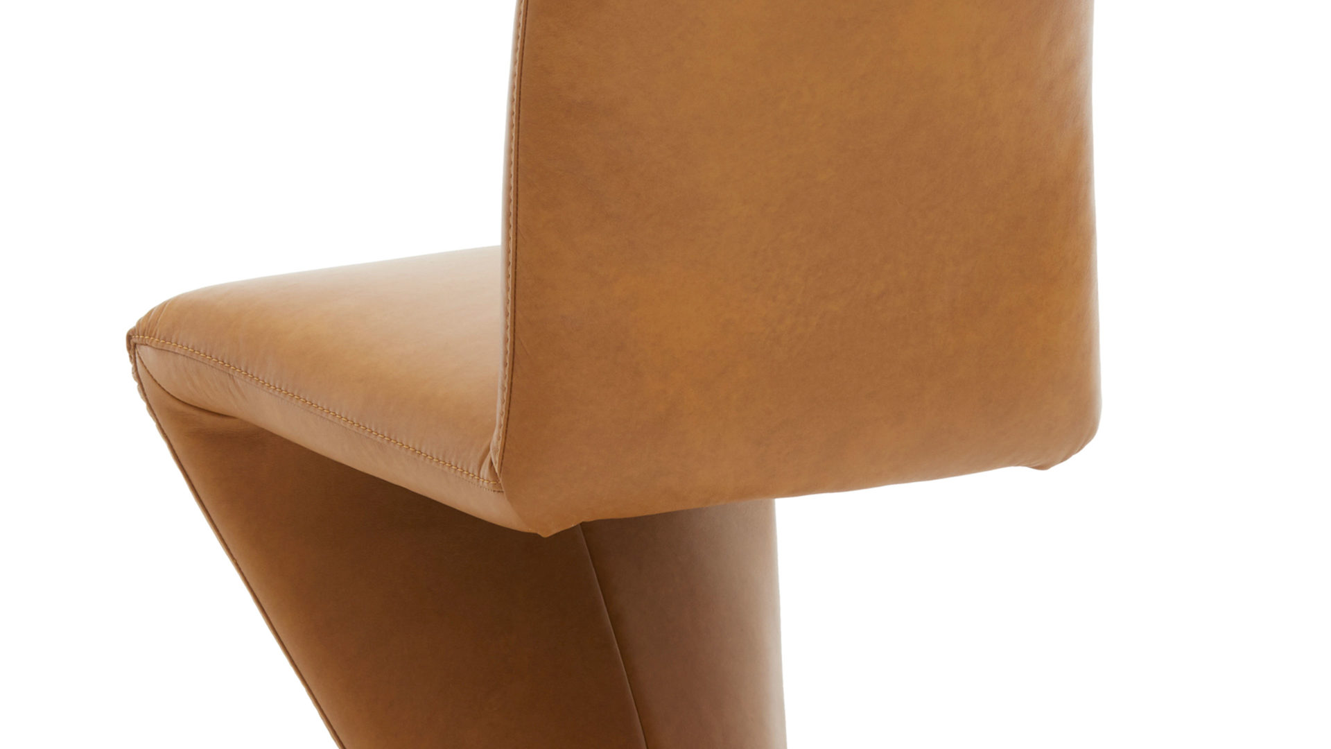 Er setzt sich aus einem schwarz pulverbeschichteten Metall-Tellerfuß mit Struktur und einem curcumafarbenen Lederbezug zusammen. Dank der perfekt aufeinander abgestimmten Materialien und Farben erscheint der Polsterstuhl absolut harmonisch und modern. Des Weiteren sorgen die geradlinige Formensprache, der hinten ebenfalls lederbezogene Rücken und die schicken Zierkappnähte für besonders nobles Flair.