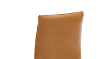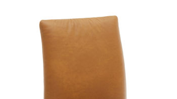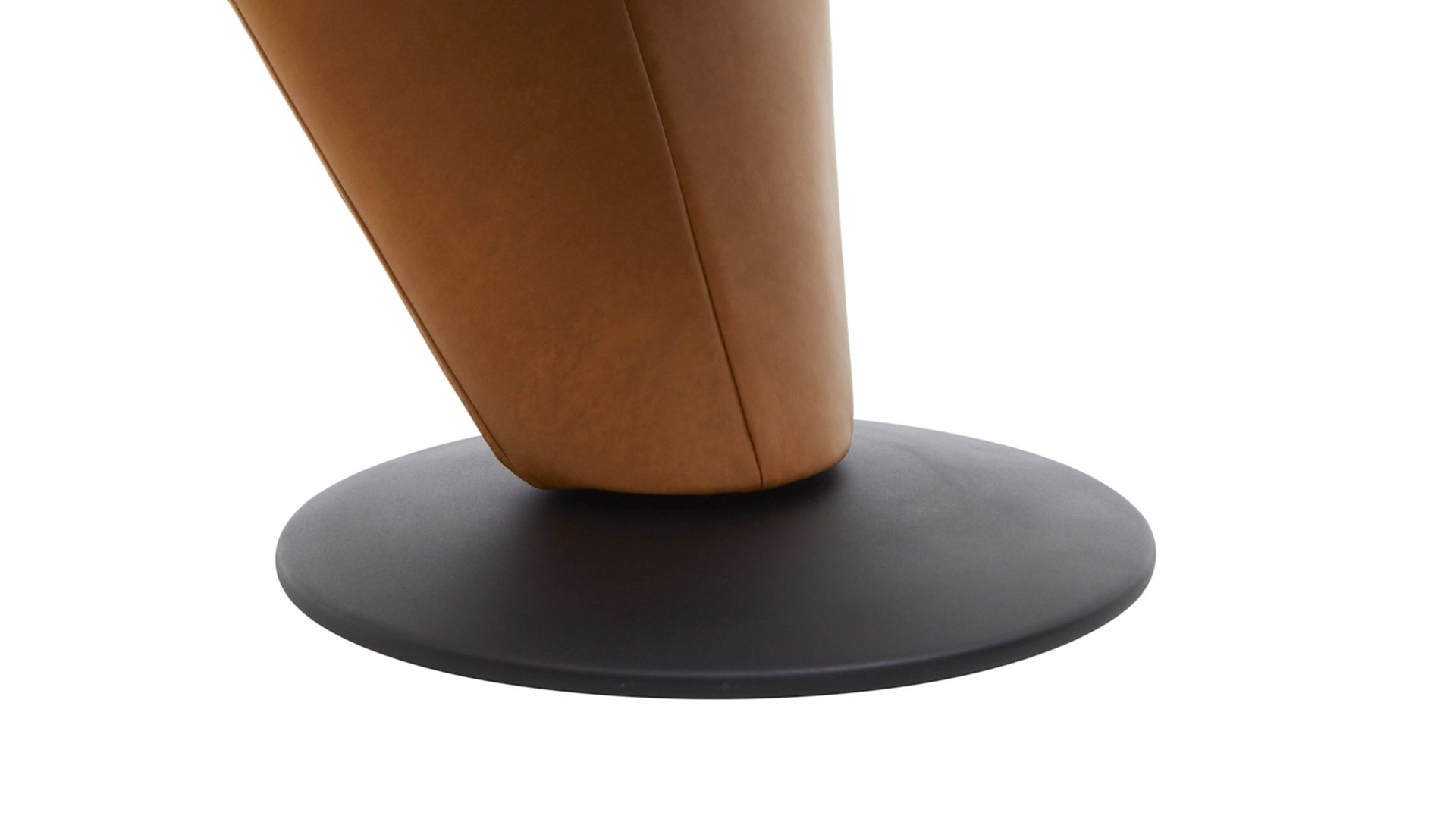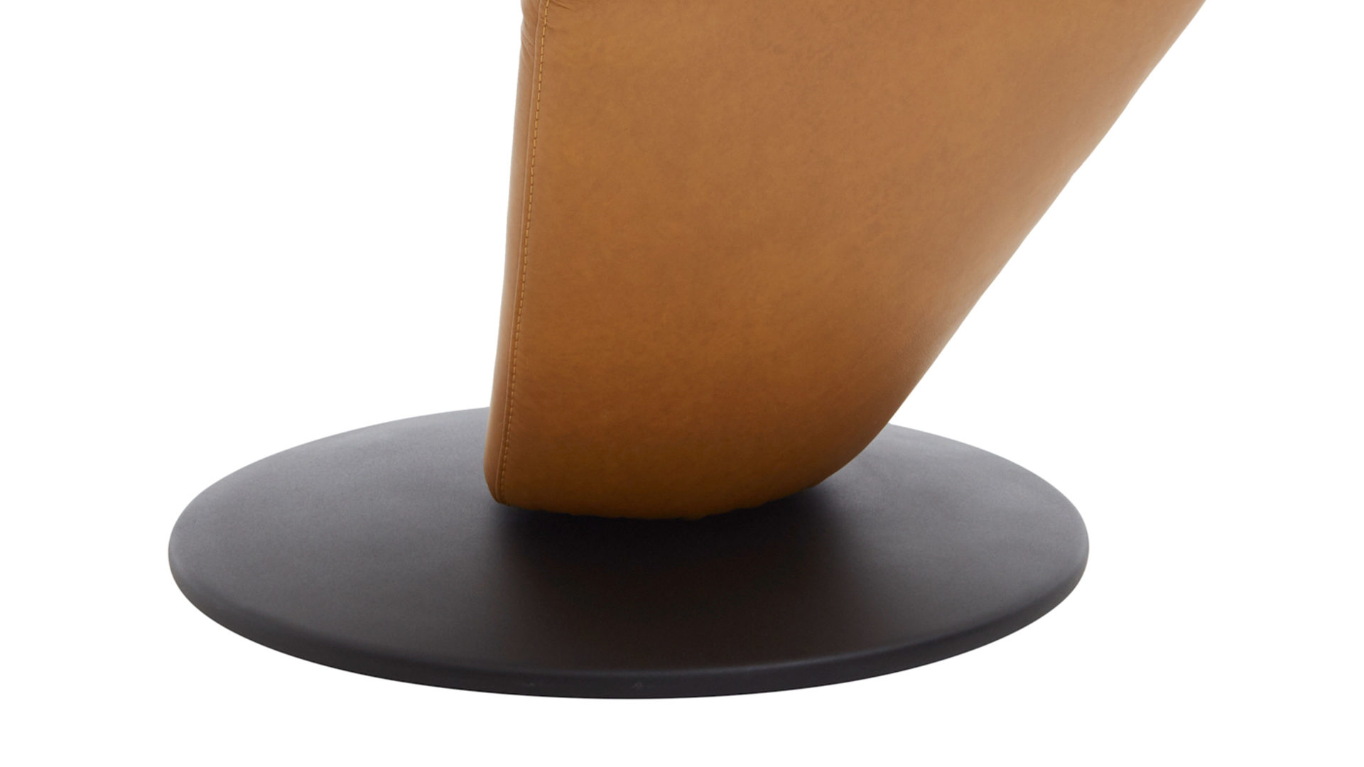 Er setzt sich aus einem schwarz pulverbeschichteten Metall-Tellerfuß mit Struktur und einem curcumafarbenen Lederbezug zusammen. Dank der perfekt aufeinander abgestimmten Materialien und Farben erscheint der Polsterstuhl absolut harmonisch und modern. Des Weiteren sorgen die geradlinige Formensprache, der hinten ebenfalls lederbezogene Rücken und die schicken Zierkappnähte für besonders nobles Flair.