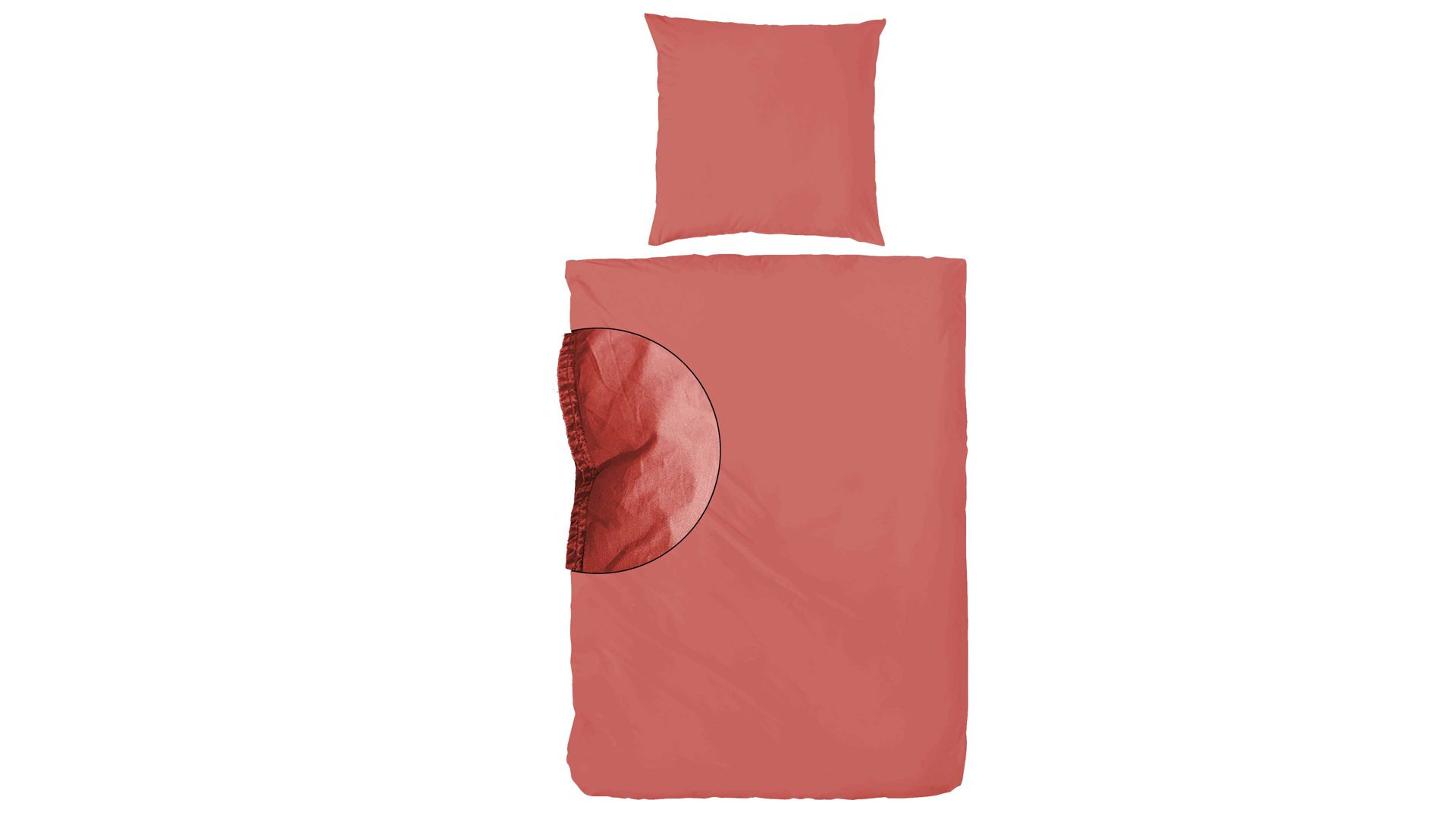 Das sienafarbene Bettwäsche-Set in Übergröße aus Renforce-Baumwolle kommt in Stone Washed-Optik daher. Das mittelfeine strapazierfähige Gewebe verfügt über eine ausgesprochen angenehme Haptik. Die temperaturausgleichende Wirkung ist ein weiterer Pluspunkt dieser schlichten Bettwäsche. Der weiche, angenehme Griff wird ergänzt durch eine glatte Oberfläche der Wäschestücke.