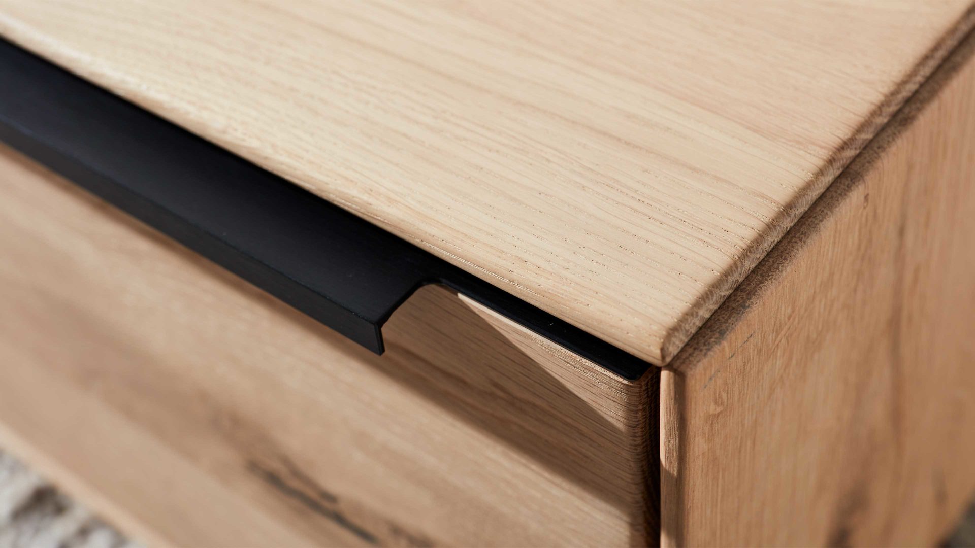 Der Couchtisch aus der Interliving Wohnzimmer Serie 2020 überzeugt durch sein harmonisches Zusammenspiel aus Massivholz-Charme und praktischen Funktionen. Gefertigt aus bianco geölter Asteiche, bringt er natürliche Wärme in dein Zuhause. Der markante Risseiche-Frontakzent und der aufliegend in die Front eingearbeitete schwarze Aluminiumgriff setzen stilvolle Akzente und verleihen dem Tisch eine moderne, elegante Ausstrahlung.