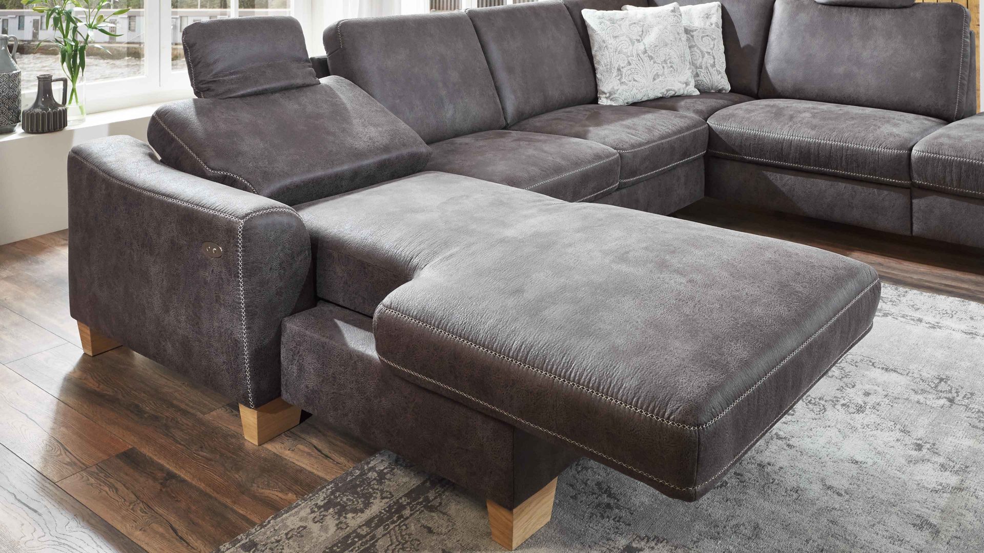 Mit der motorischen Relaxfunktion bringen Sie sich ganz bequem mittels eines Touch-Sensors bis hin in eine Liegeposition. So ist das Canapé der Wohnlandschaft noch bequemer als ohnehin bereits.