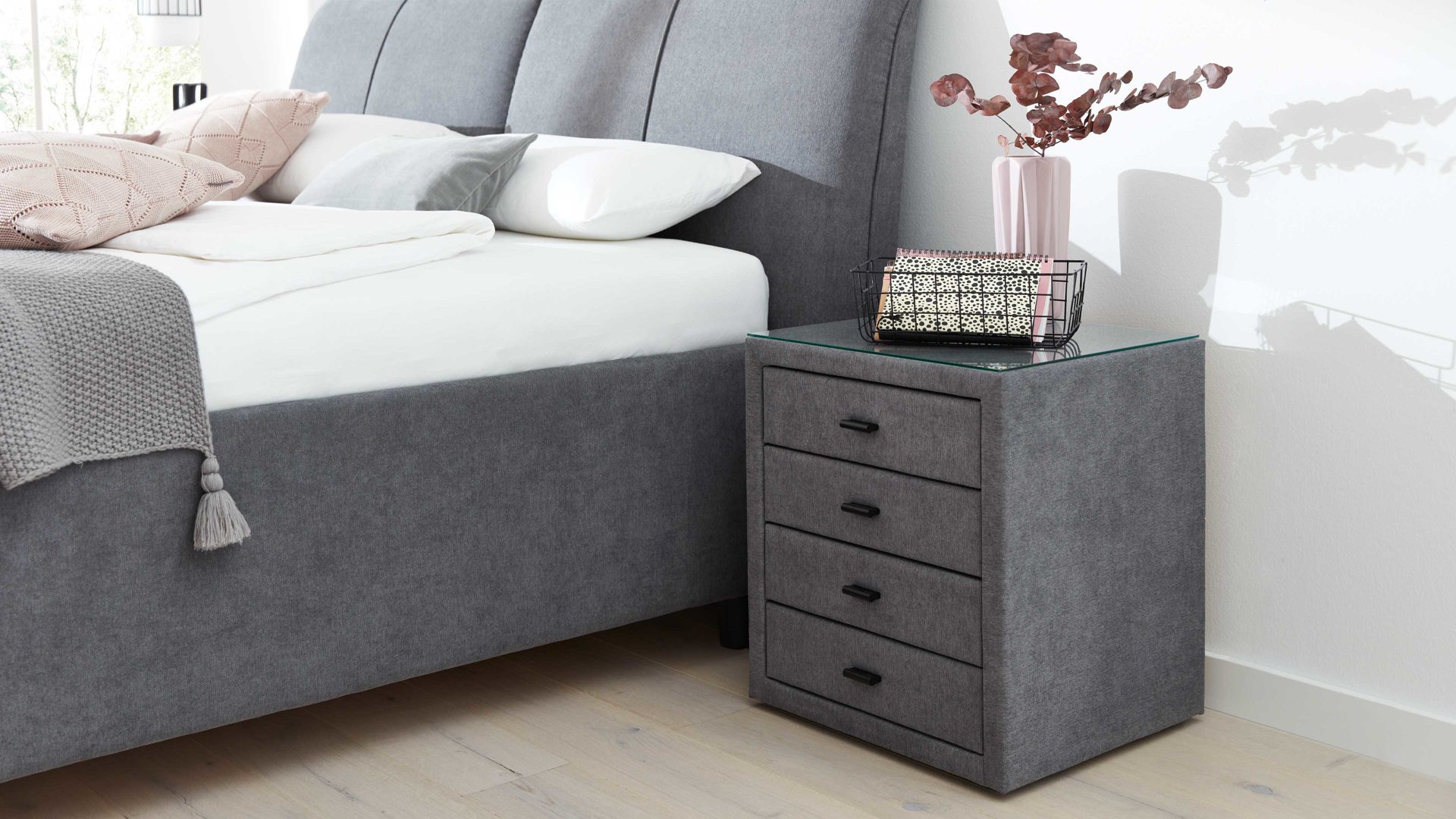 Nachtkommode aus der Interliving Bettsystem Serie 1414 – funktionales Design in stilvoller Stoffoptik
