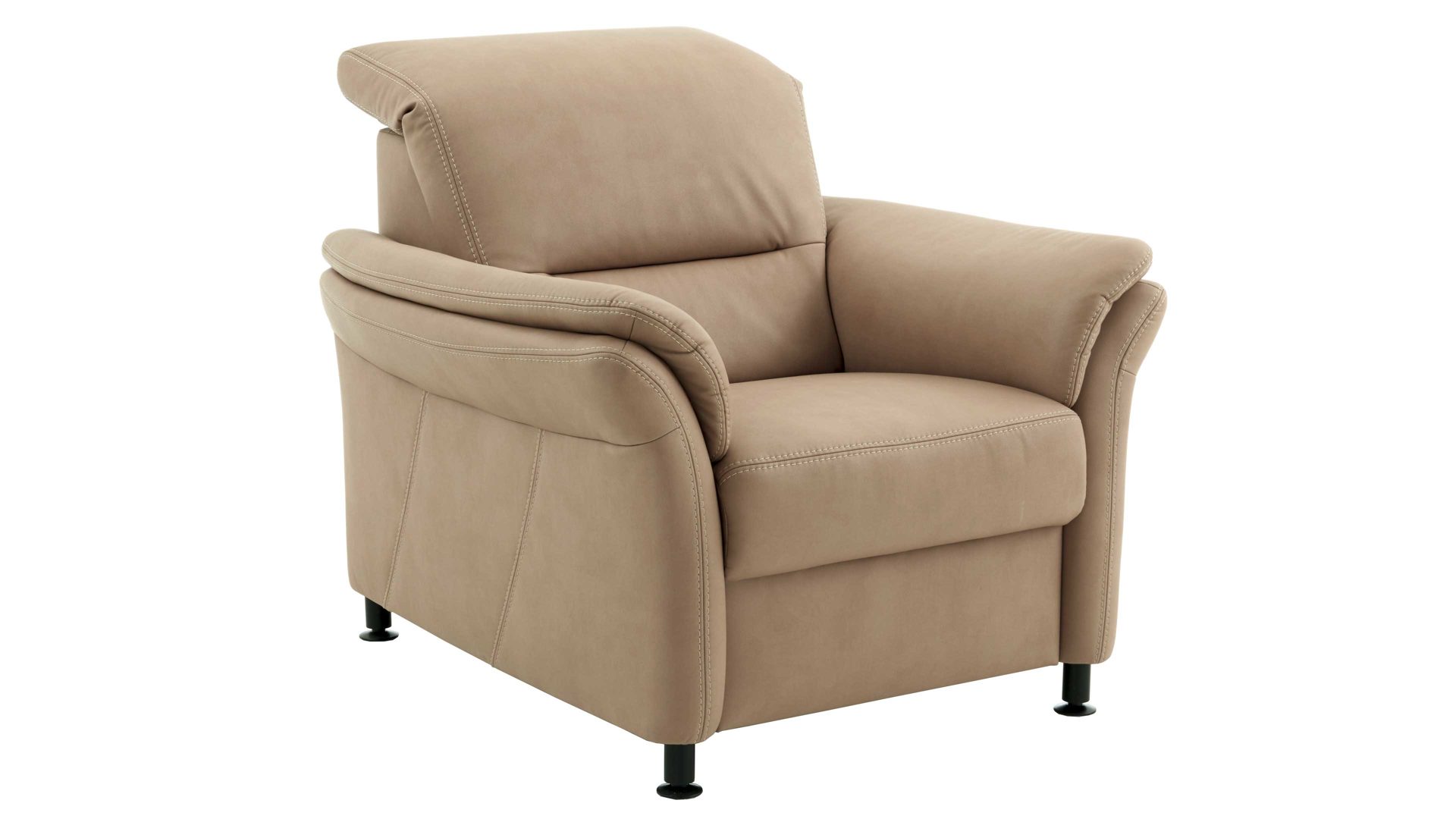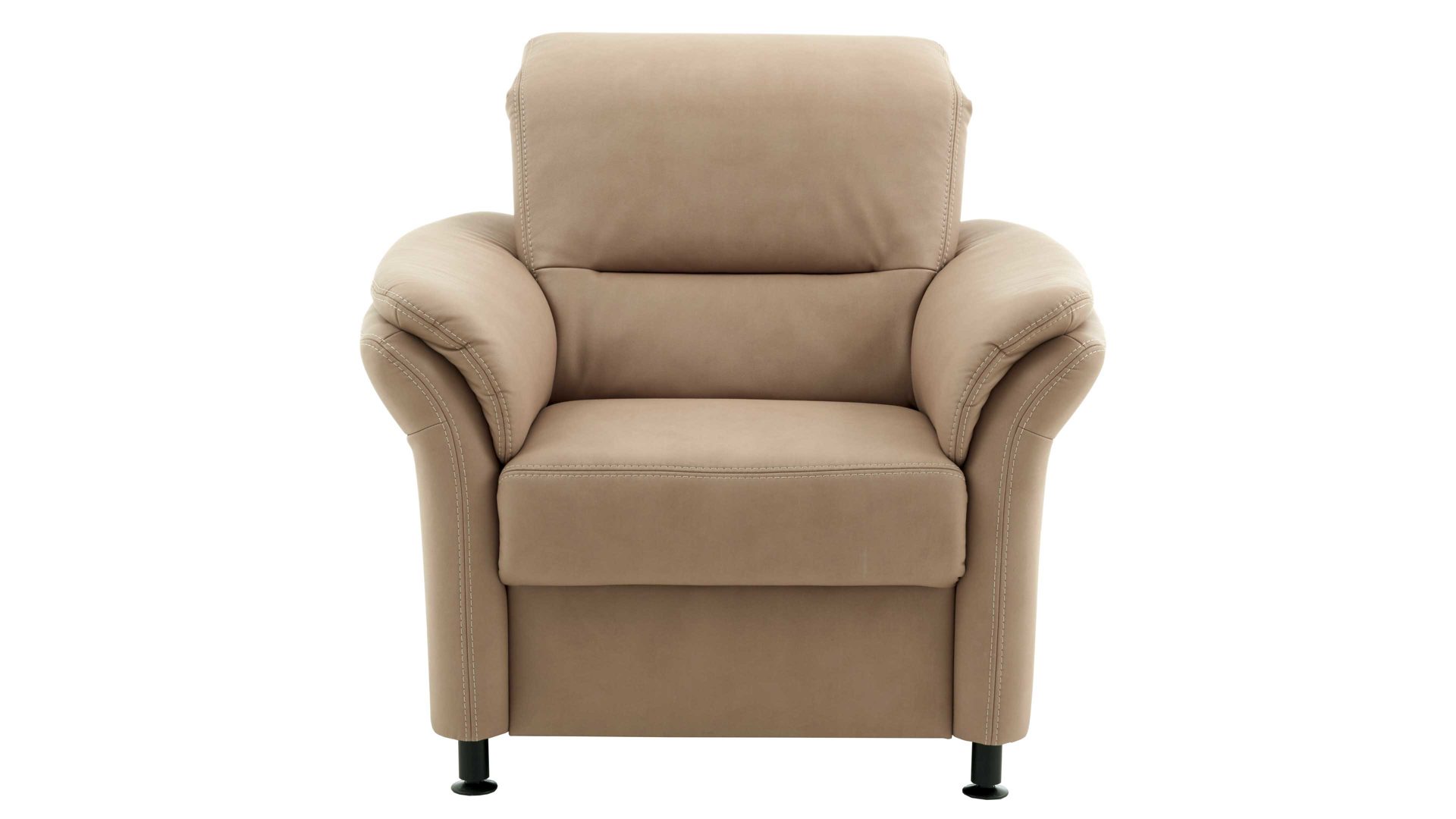 Der Sessel aus dem edlen Modulmaster Programm MM-ZE1148 kombiniert den camelfarbenen Mikrofaserbezug Galero mit einer beigefarbenen Doppel-Kontrastnaht und strahlt moderne Eleganz mit warmem Charme aus. Stilvoll abgerundet wird der Polstersessel durch die puristisch mattschwarzen Metallfüße Z002-M01. Die Rückseite ist serienmäßig im Originalstoff bezogen, was die Hochwertigkeit der Optik noch einmal verstärkt.