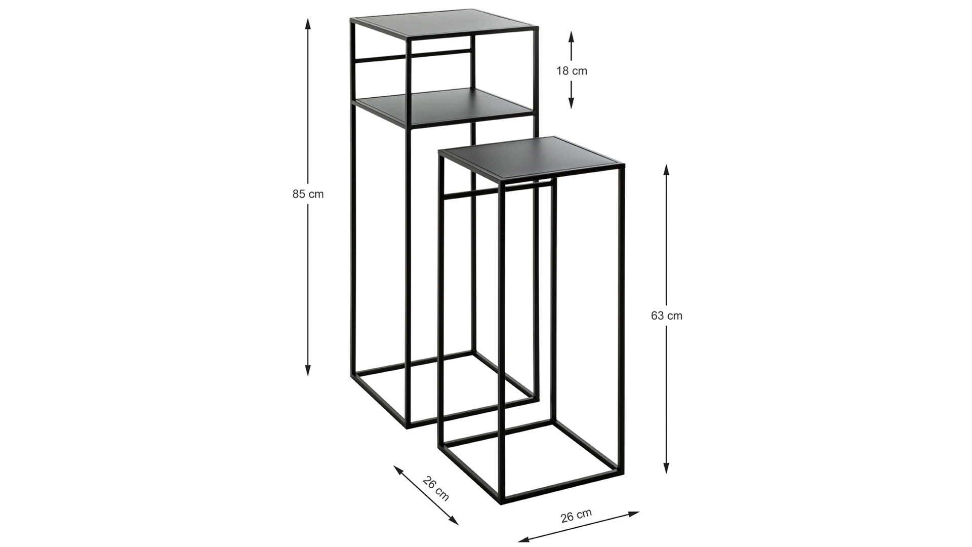Dieses hochwertige Beistelltisch-Set repräsentiert die Eleganz schlichter Modernität. Aus klassisch mattschwarz lackiertem Metall einschließlich Vierkantrohr-Gestell gefertigt, erscheinen die zwei Beistelltische puristisch und sind dazu enorm robust und langlebig.