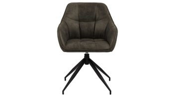 Der Armlehnsessel kann sich nicht nur sehen, sondern auch fühlen lassen. Mit seiner komfortablen Schaumpolsterung ermöglicht er bequemes Sitzen. Auch die Armlehnen sind gepolstert. Des Weiteren ist der attraktive Esszimmerstuhl mit einer praktischen Drehfunktion ausgestattet. Seine Sitzhöhe beträgt ca. 46 cm und die Sitztiefe liegt bei ca. 41 cm. Die Gesamtmaße des Drehsessels belaufen sich auf ca. 58 x 85 x 55 cm (BxHxT). Er ist bis maximal 110 kg belastbar. Der clevere Einsatz der Plastik-Fußkappen schützt den Fußboden.