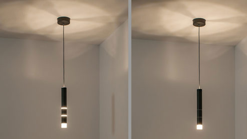 drei getrennt schaltbare Leuchtelemente - Downlight, Sidelight und Uplight