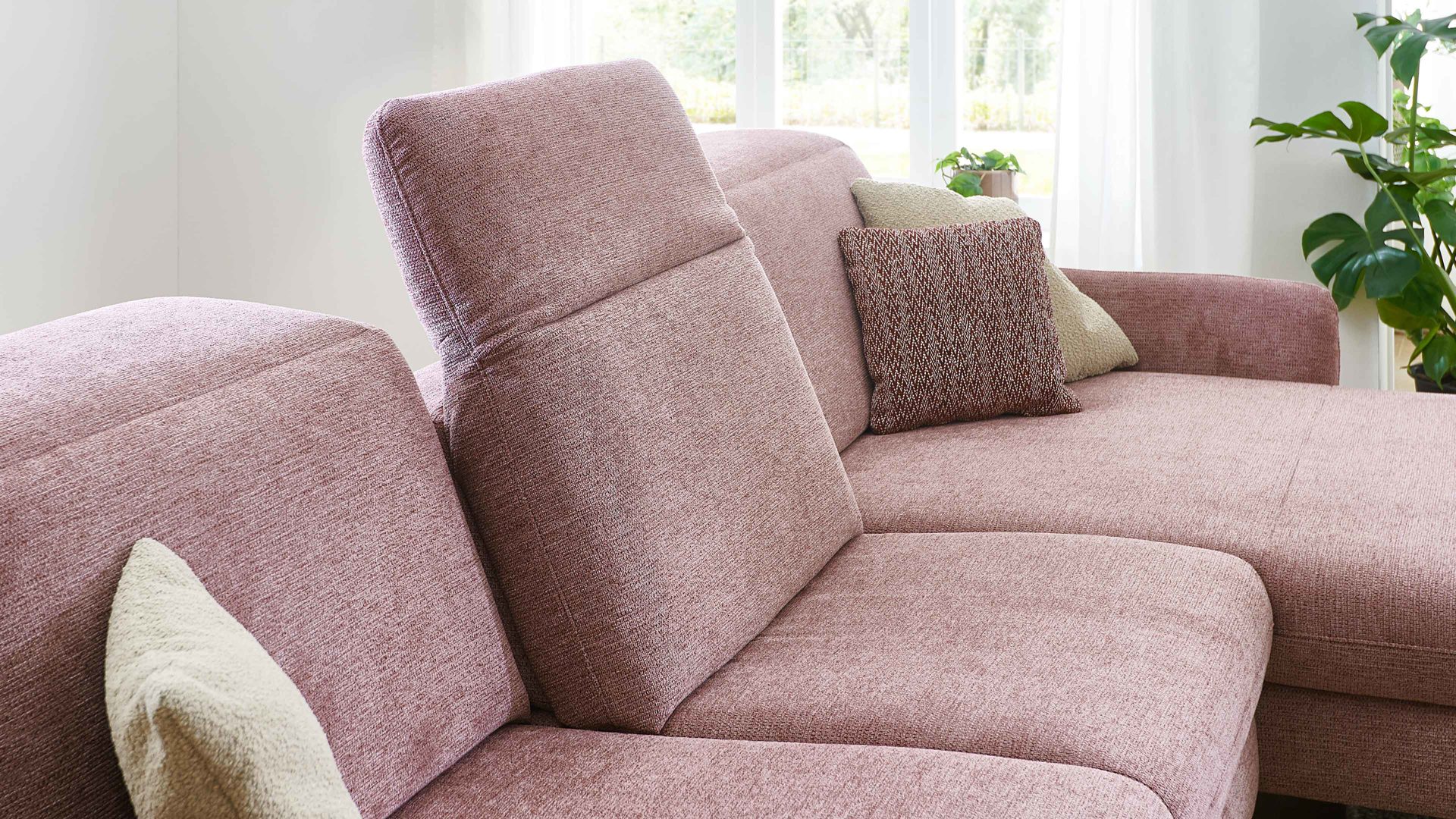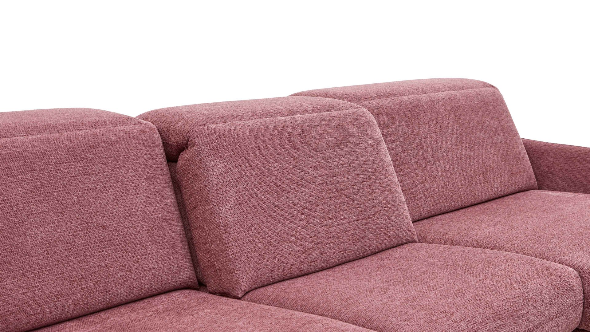 Zu den Highlights des Polsterprogramms gehören die grundsätzlich im Originalstoff bezogenen Rückseiten, die bei allen Elementen enthaltene Kopfpolsterverstellung sowie die für Staubsaugerroboter ideale Bodenfreiheit. Die Serie ist Made in Europe und mit dem Goldenen M ausgezeichnet.