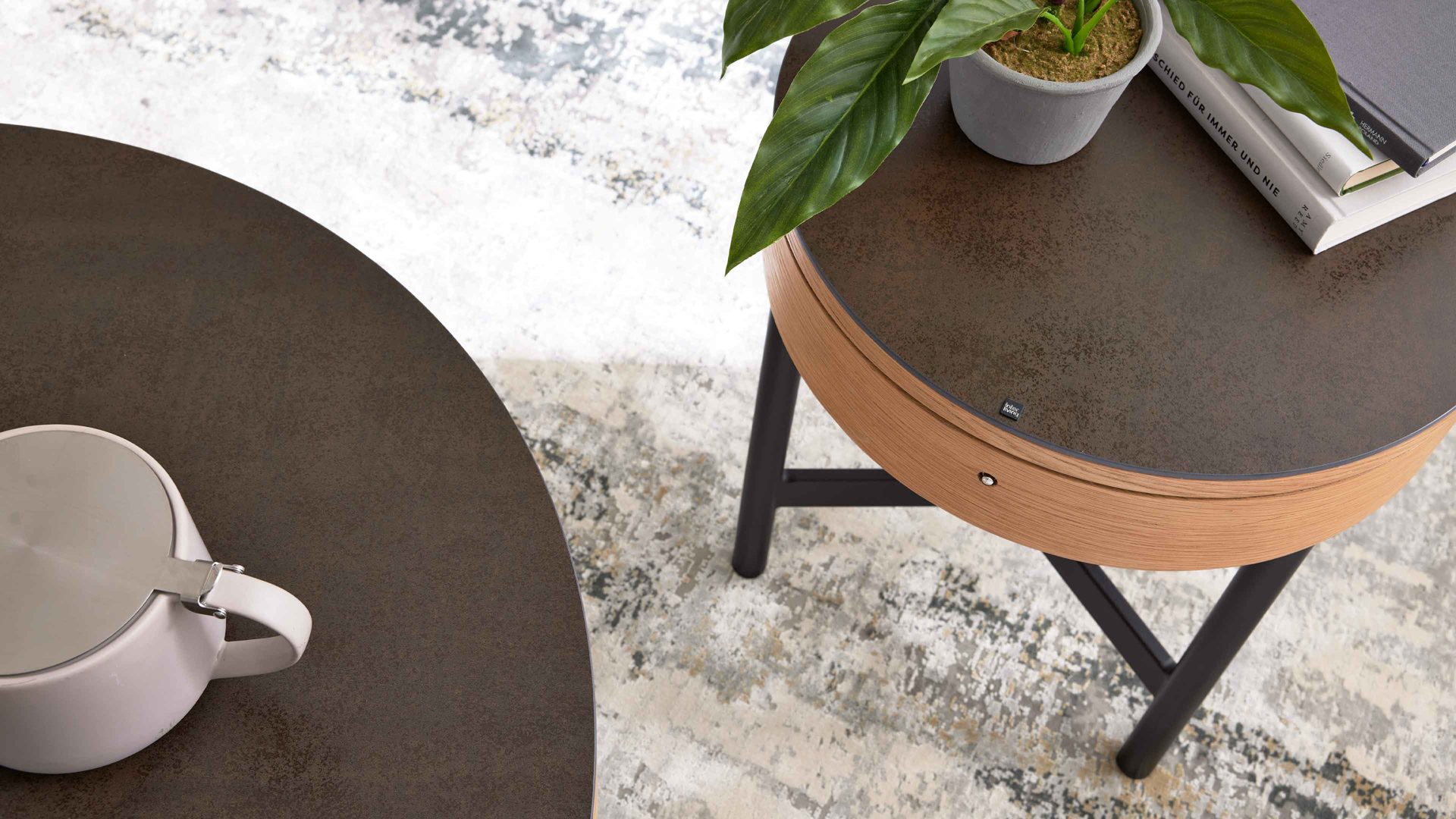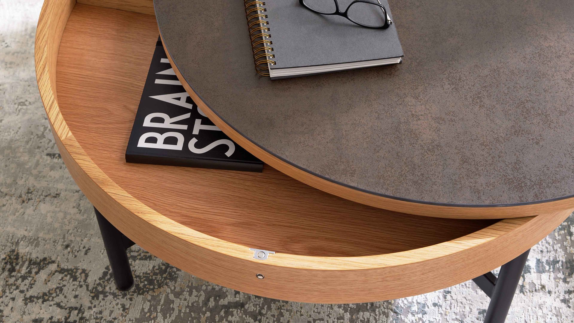 Der Beistelltisch aus der Interliving Couchtisch Serie 6216 überzeugt durch edle Materialien, clevere Funktionen und ein modernes, elegantes Design. Die Kombination aus titanfarbener Keramik-Tischplatte, hellem Eichefurnier und mattschwarz lackierten Stahlfüßen verleiht dem Tisch eine harmonische, zeitgemäße Ausstrahlung. Ob im Wohnzimmer, Schlafzimmer, Flur oder Home Office – dieser kompakte Funktionstisch lässt sich vielseitig einsetzen und fügt sich perfekt in unterschiedlichste Wohnstile ein.