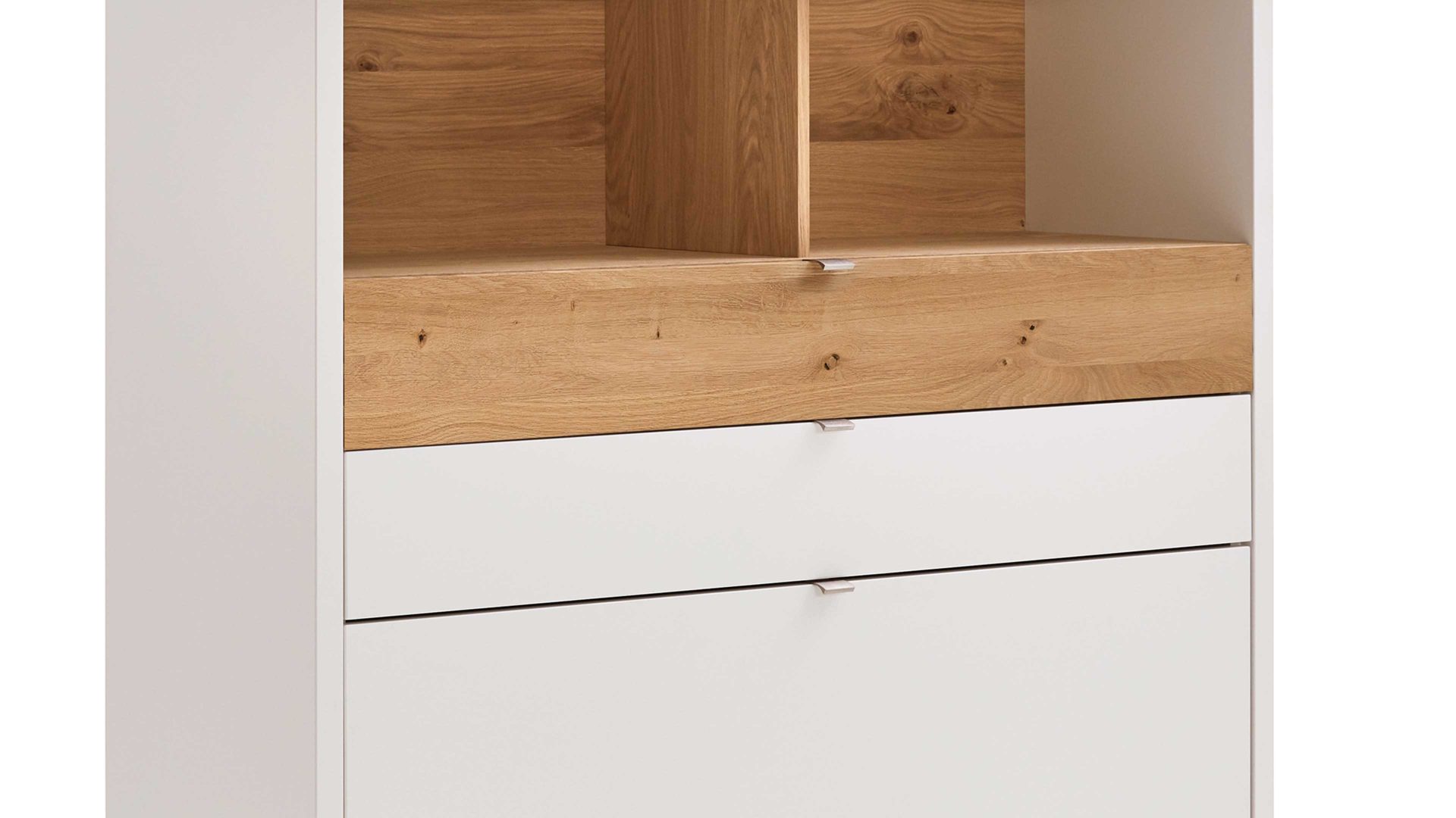 sichtbare Fächer mit Rückseiten und Böden in Eiche