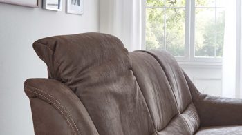 elephantfarbener Mikrofaserbezug mit Prägung und sandfarbener Kontrastnaht