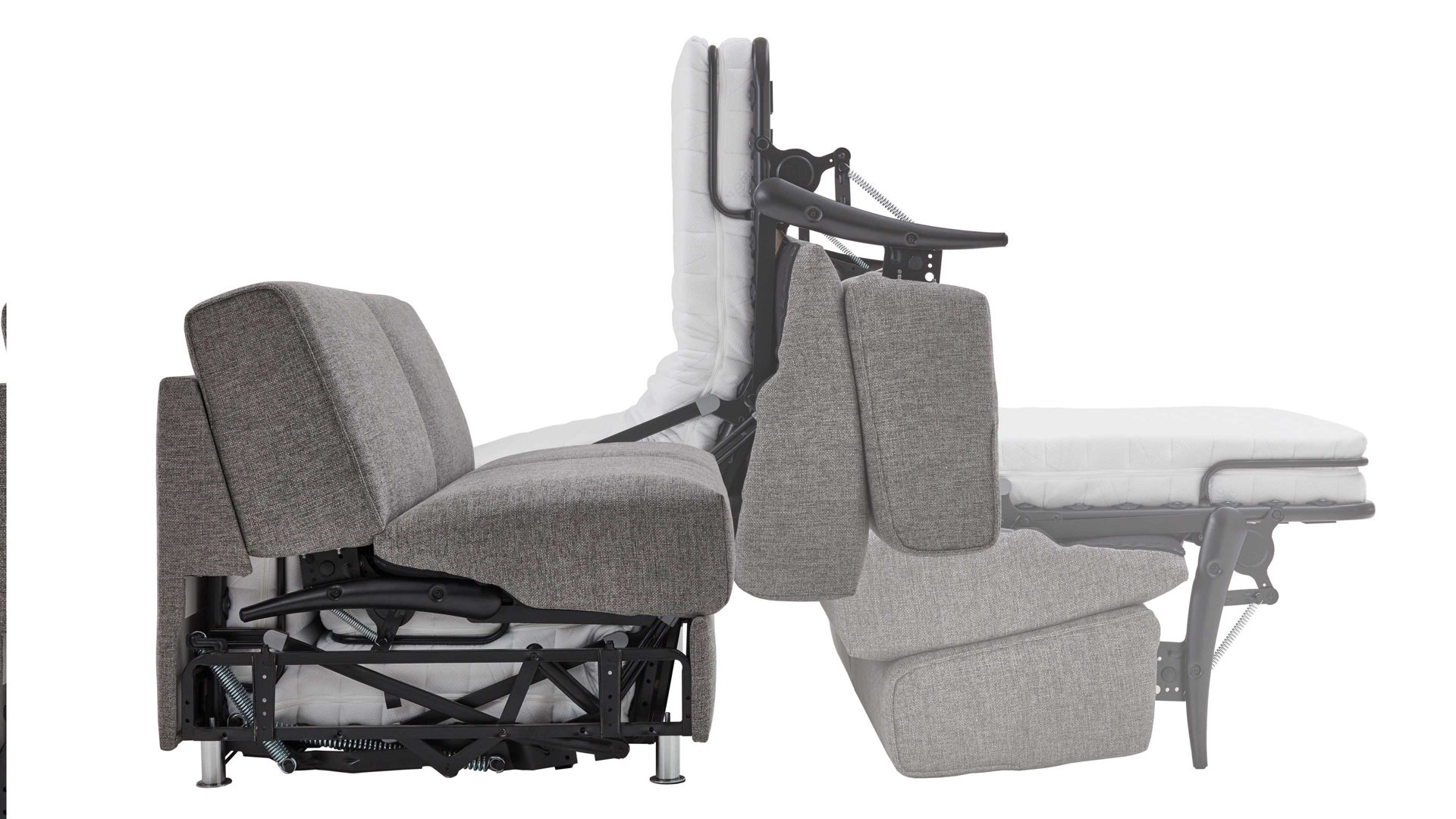 Der durchgehende Lattenrost des Sofas verfügt über eine sechsfache Härtegradregulierung, sodass Sie Ihre Liegehärte individuell anpassen können. Die klappbare Armlehne ermöglicht Ihnen zudem eine optimale Sitz- und Liegeposition.