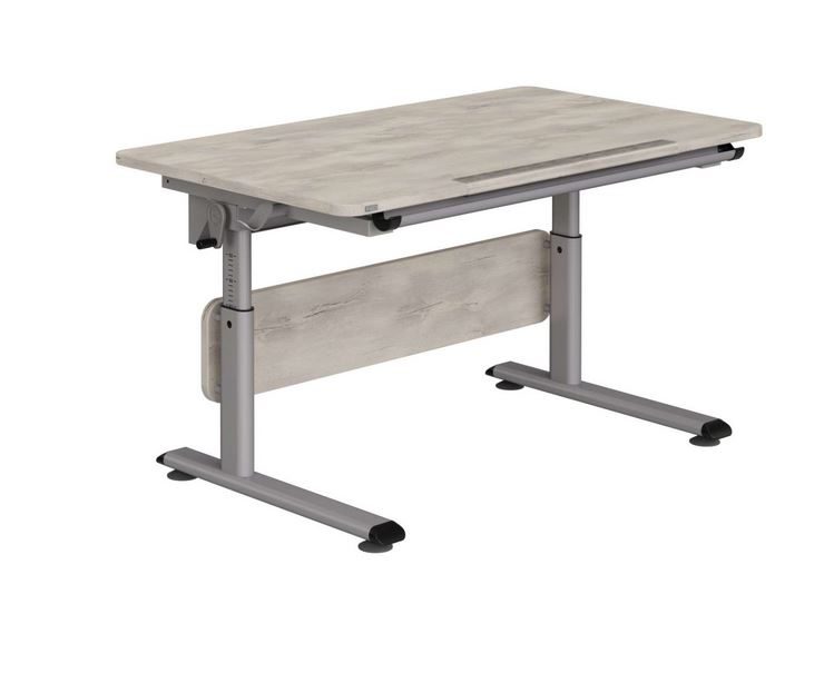 Der PAIDI Schreibtisch Diego, aus einer Platte in Eiche Nautik und einem dazu passenden Metallgestell in silber, passt besonders gut ins Kinderzimmer. Er lässt sich auch mit einem Rollcontainer oder einem Schreibtischstuhl kombinieren.
