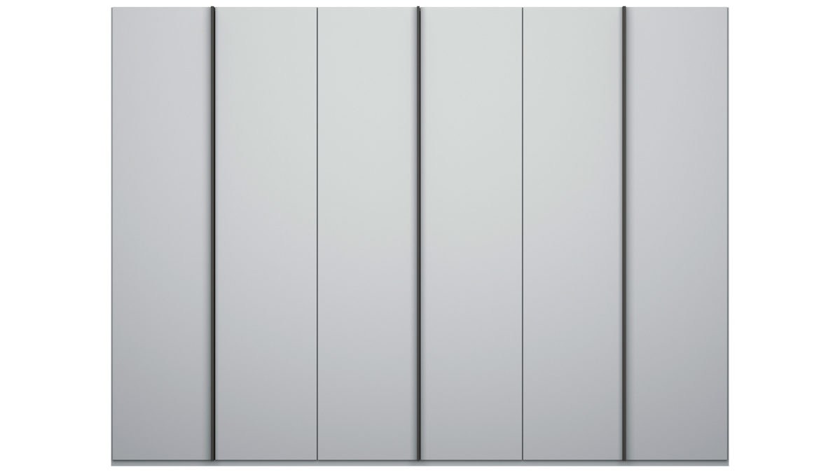 matte seidengraue Oberflächen, kombiniert mit graphitfarbenen Griffleisten Meridian