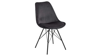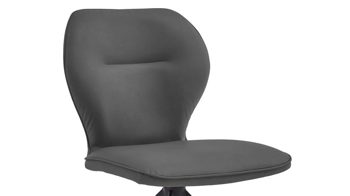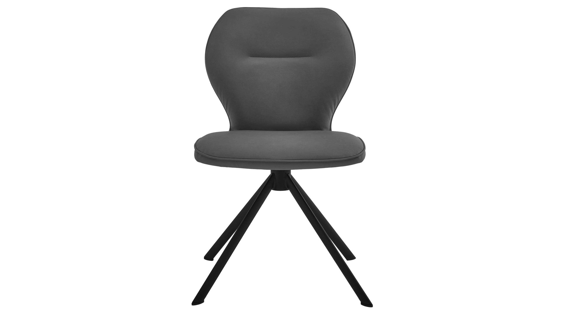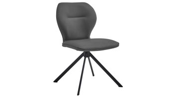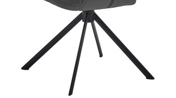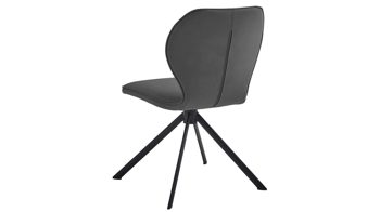 Er kombiniert ein mattschwarz lackiertes Stativgestell aus robustem Eisen mit einem graphitfarbene Mikrofaserbezug in Lederoptik und fügt sich in verschiedene Wohnstile harmonisch ein. Zu den optischen Highlights des Esszimmerstuhls gehört neben der Formensprache und den perfekt aufeinander abgestimmten Farben der markante Quereinzug im Rücken.