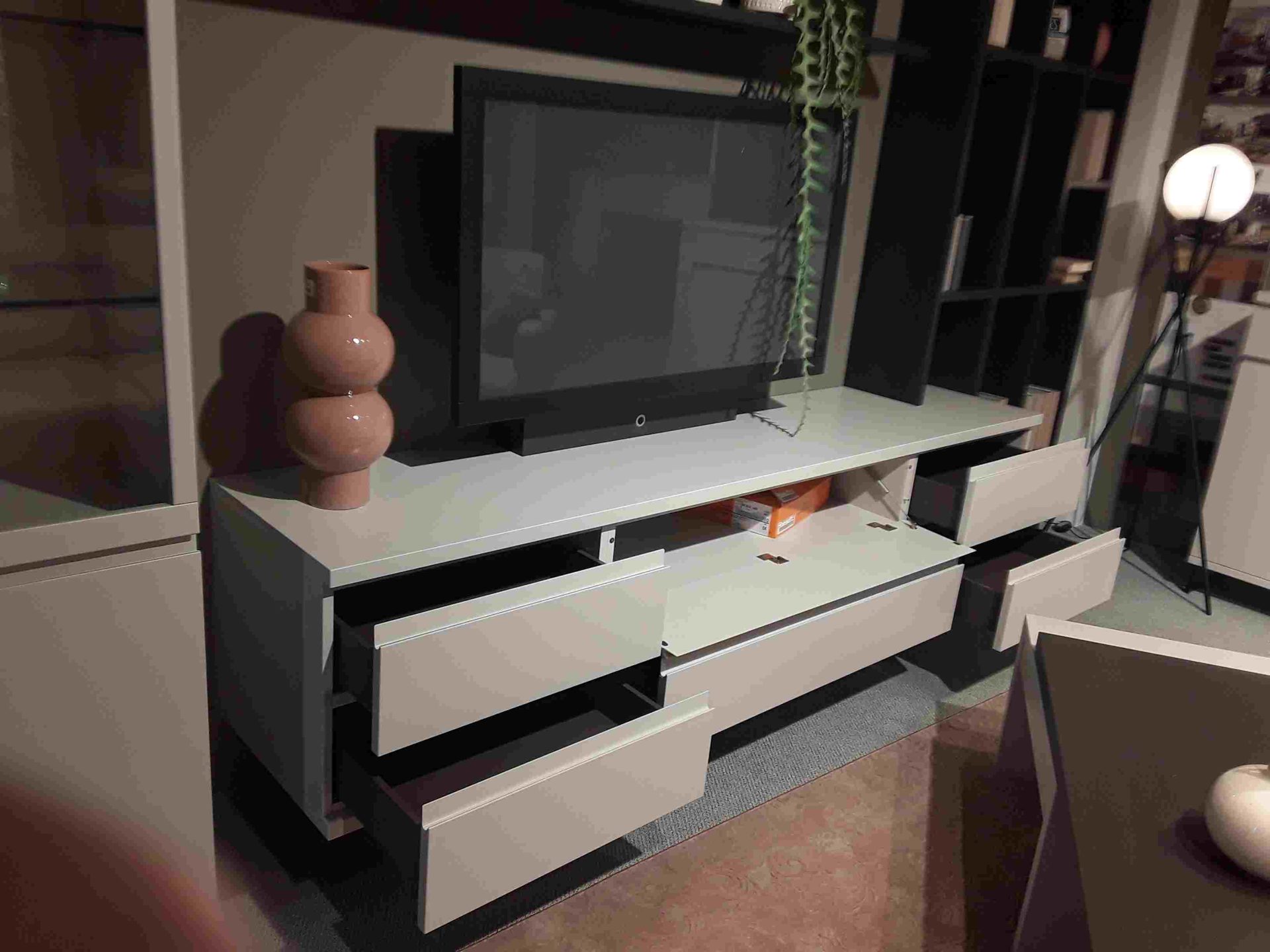 - 1 x TV-Halterung, 91195 Wandbef.und Blende Eiche graphit