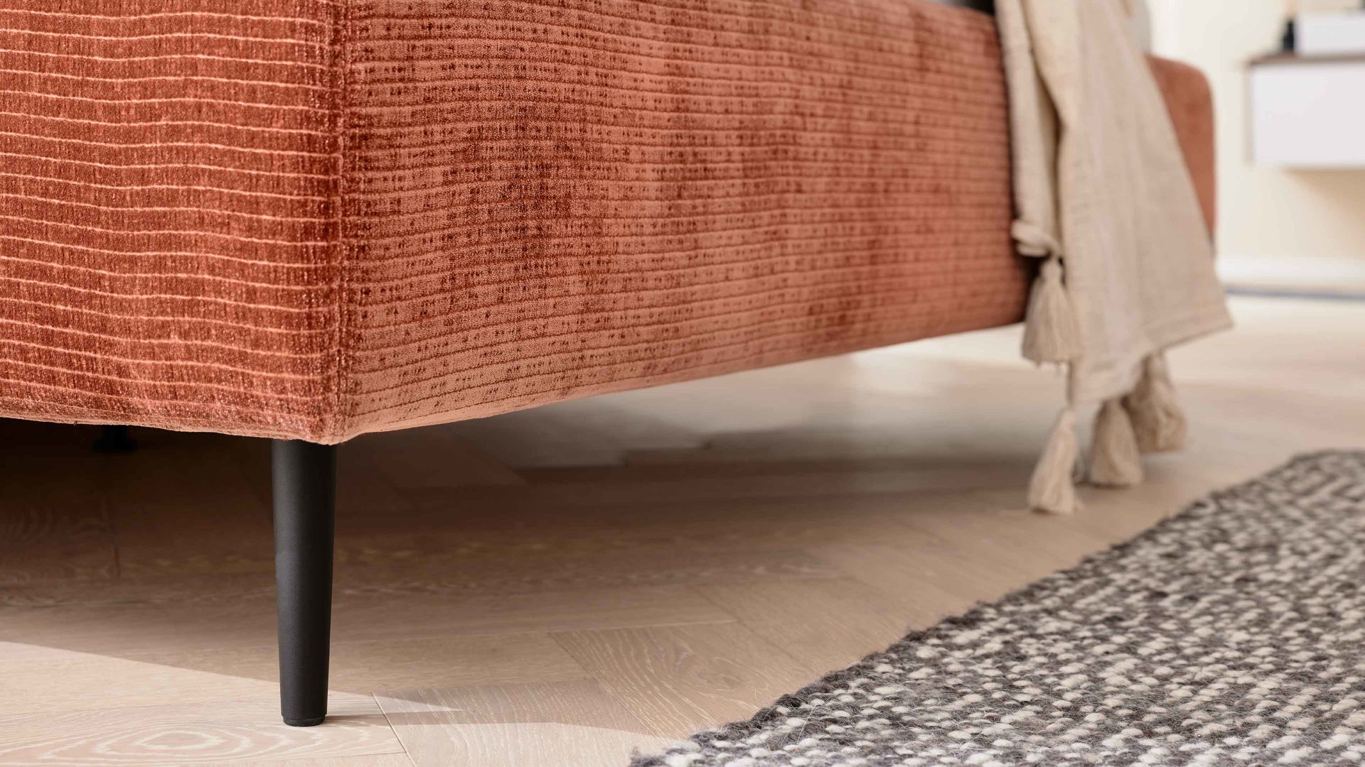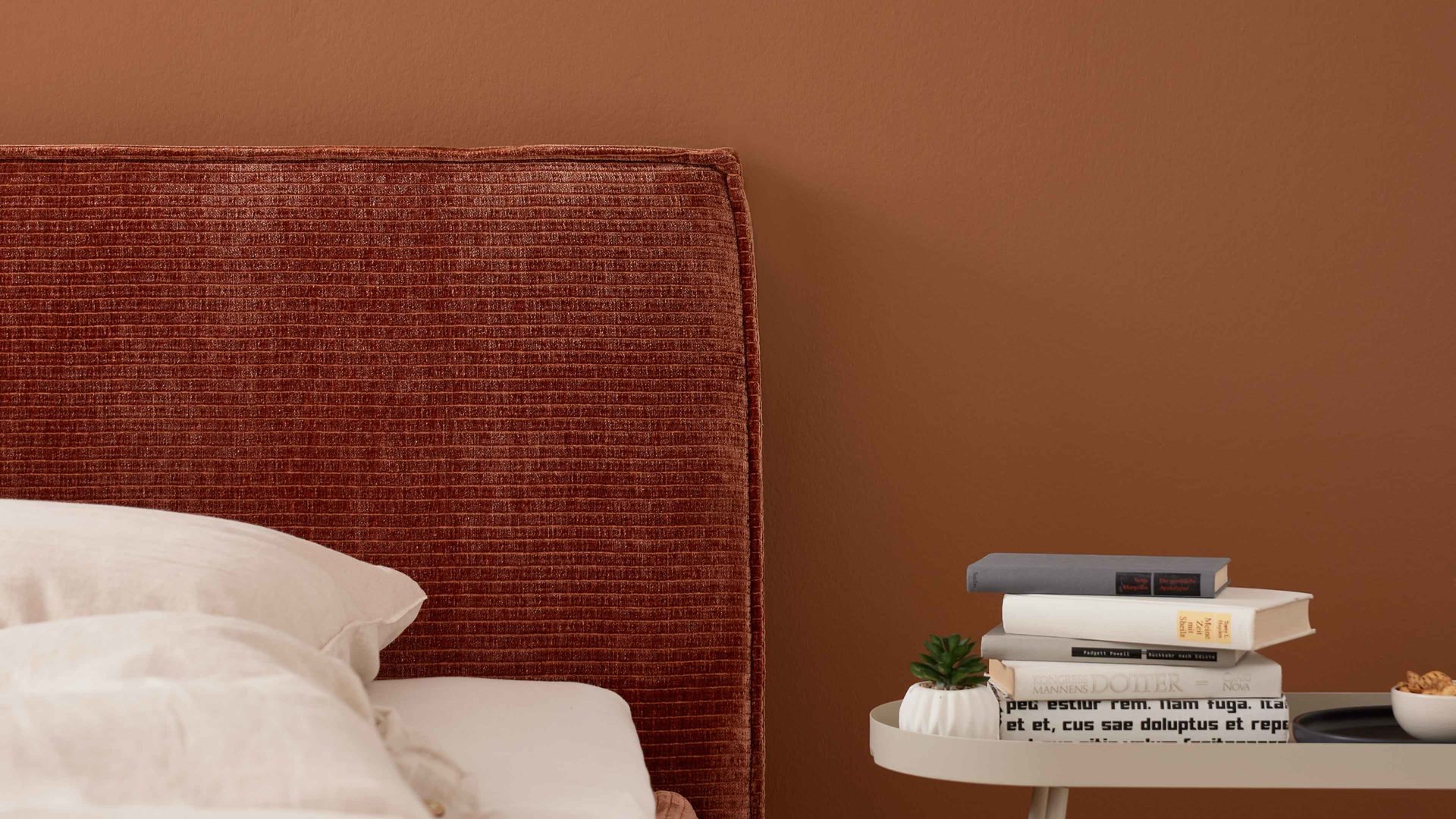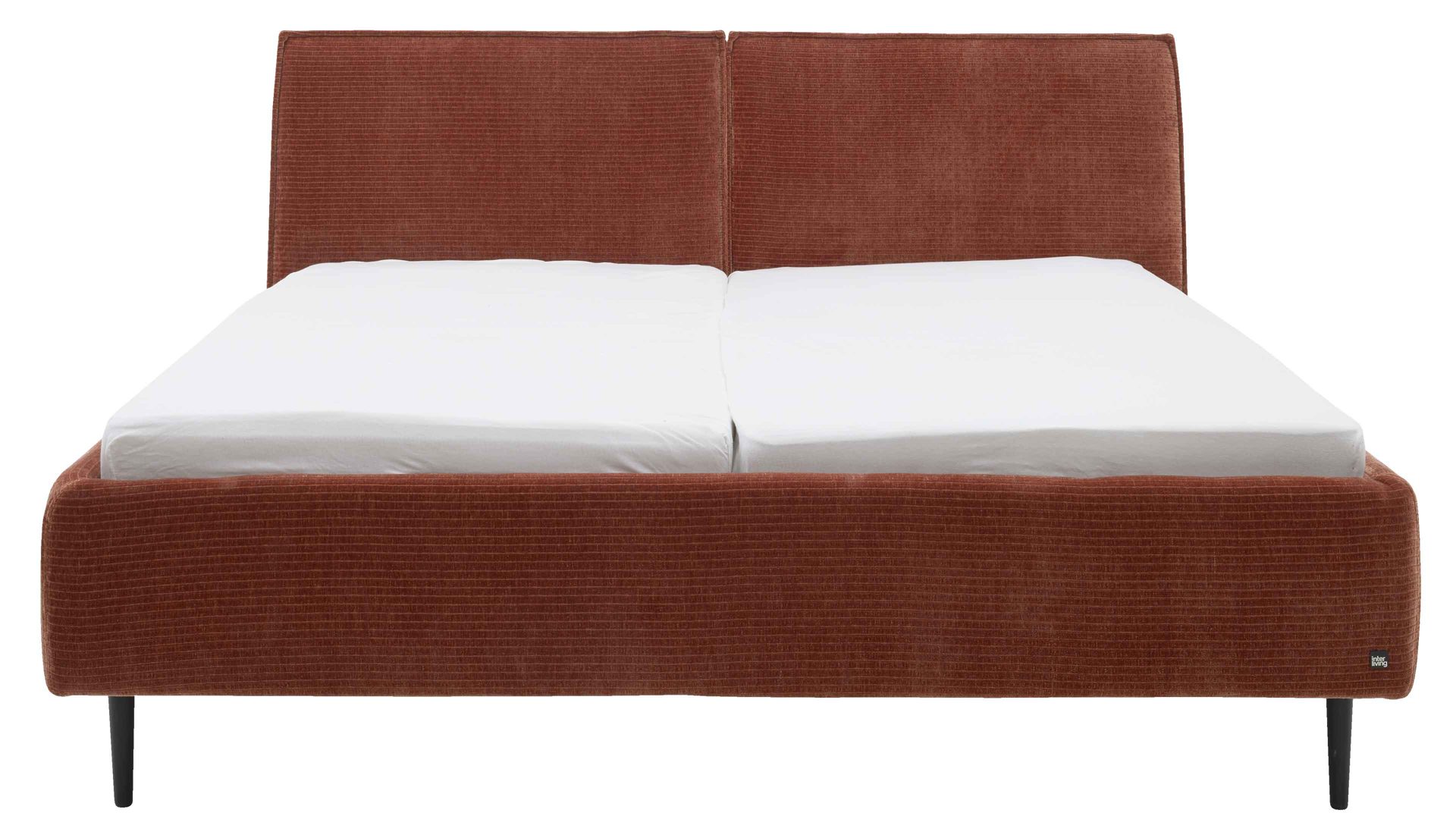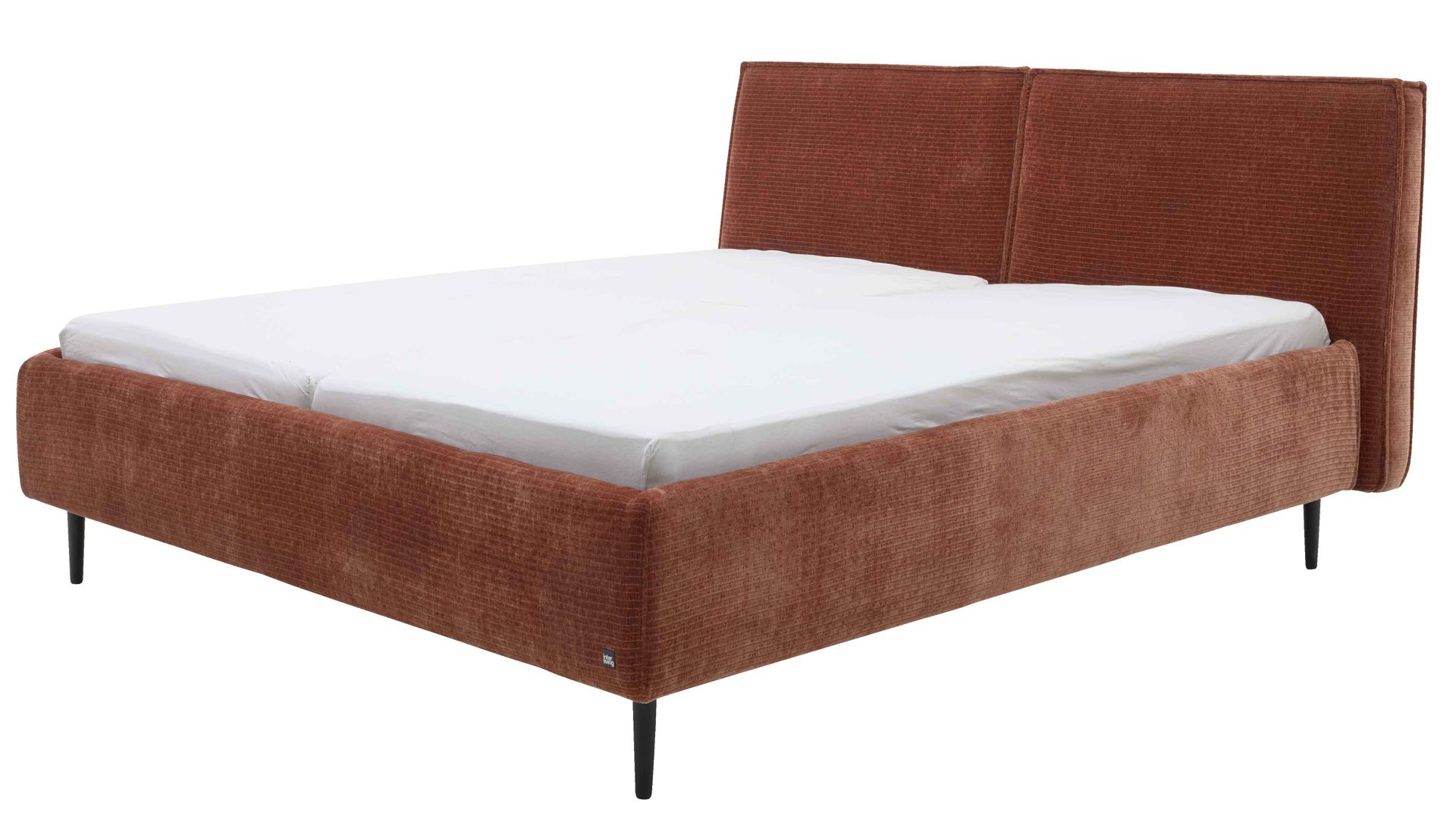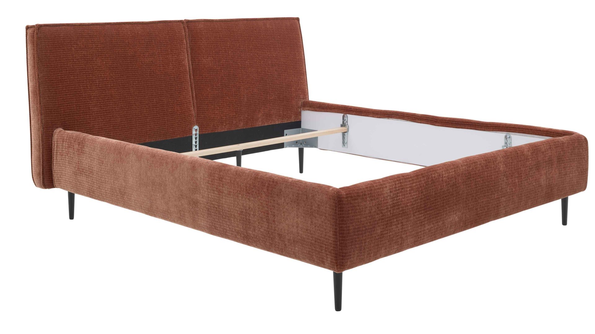 Das Polsterbettgestell aus der Interliving Polsterbett Serie 1417 kombiniert moderne Eleganz, hochwertige Materialien und durchdachte Funktionalität zu einem stilvollen Mittelpunkt im Schlafzimmer. Der modern-rostfarbene Stoffbezug bringt eine warme, einladende Atmosphäre in den Raum, während die mattschwarzen Metallfüße einen eleganten Kontrast setzen und dem Bett eine leichte, moderne Optik verleihen.