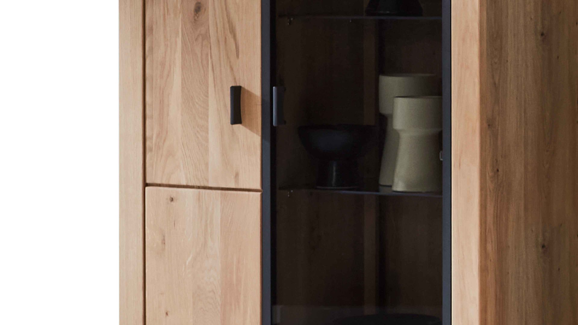 | Farbhinweis: | Eiche Artisan Schwarzgrau sandgestrahltes Holz Klarglas | |