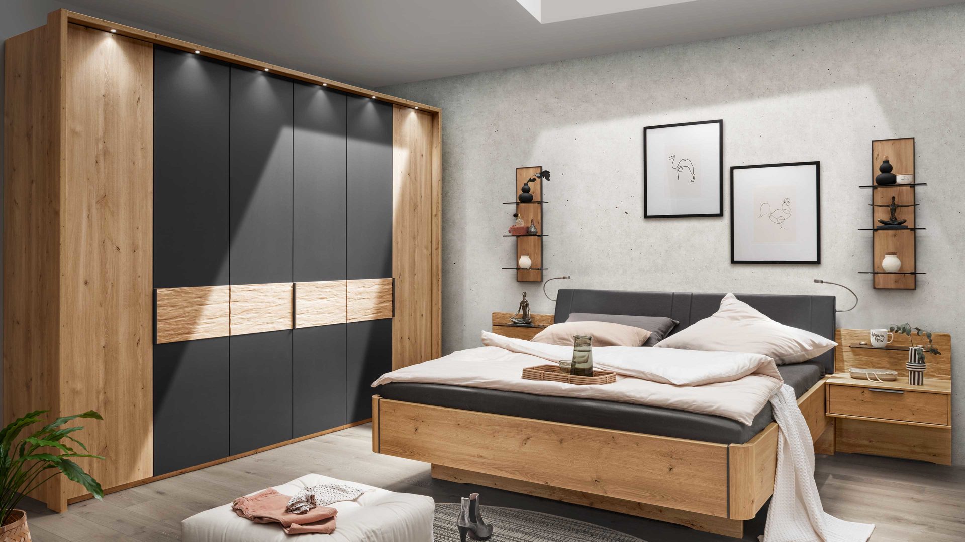 Bianco Eiche-Nachbildung, kombiniert mit Graphit